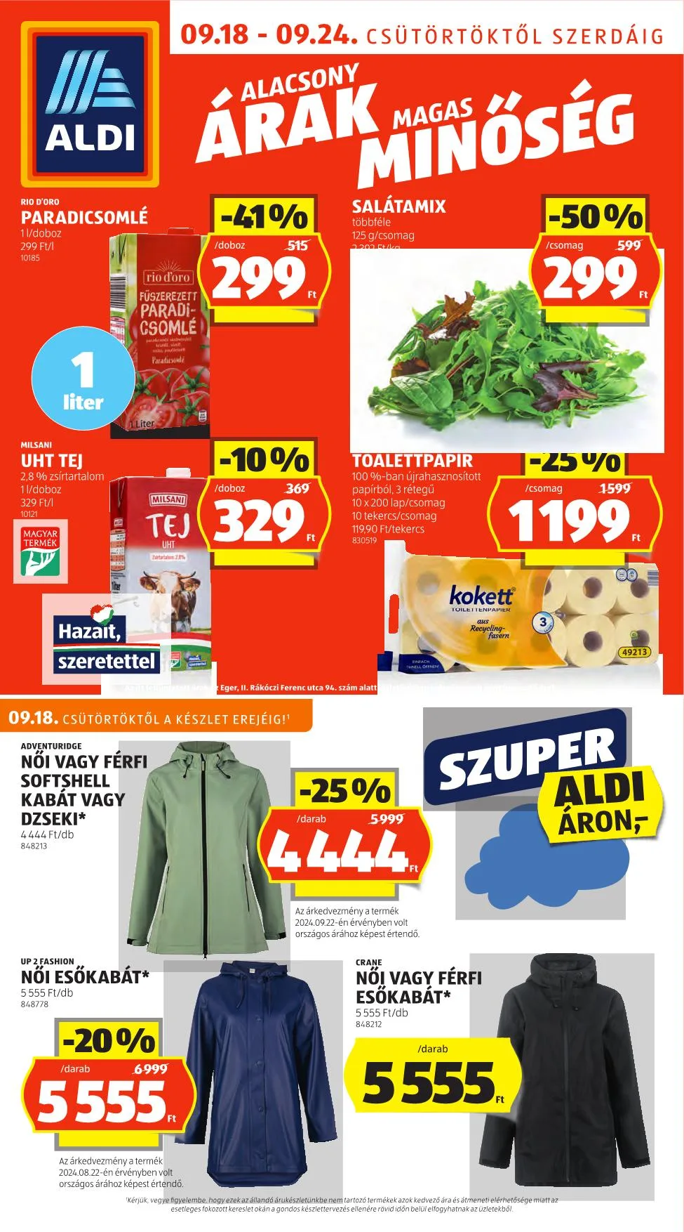 Ajánlat érvényessége: 09.18 – 09.24. (csütörtöktől szerdáig)