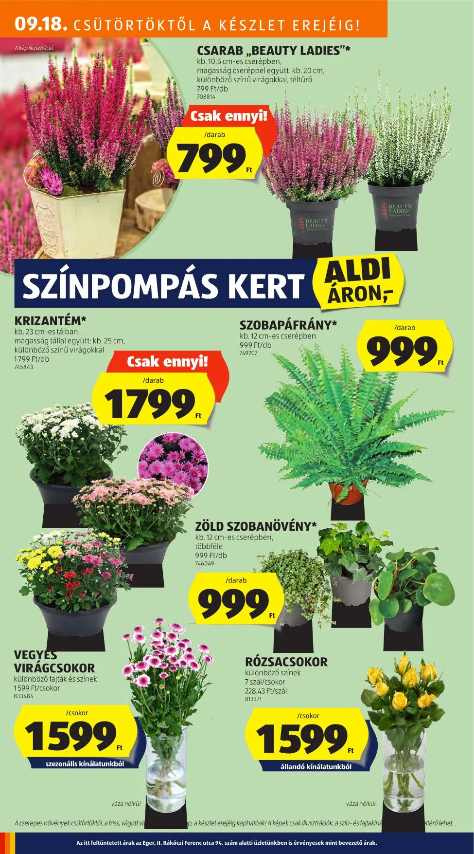 Megjegyzés: A cserepes növények csütörtöktől a friss, vágott virágok, a készlet erejéig kaphatóak! A képek csak illusztrációk, a szín- és fajtakínálat eltérő lehet.