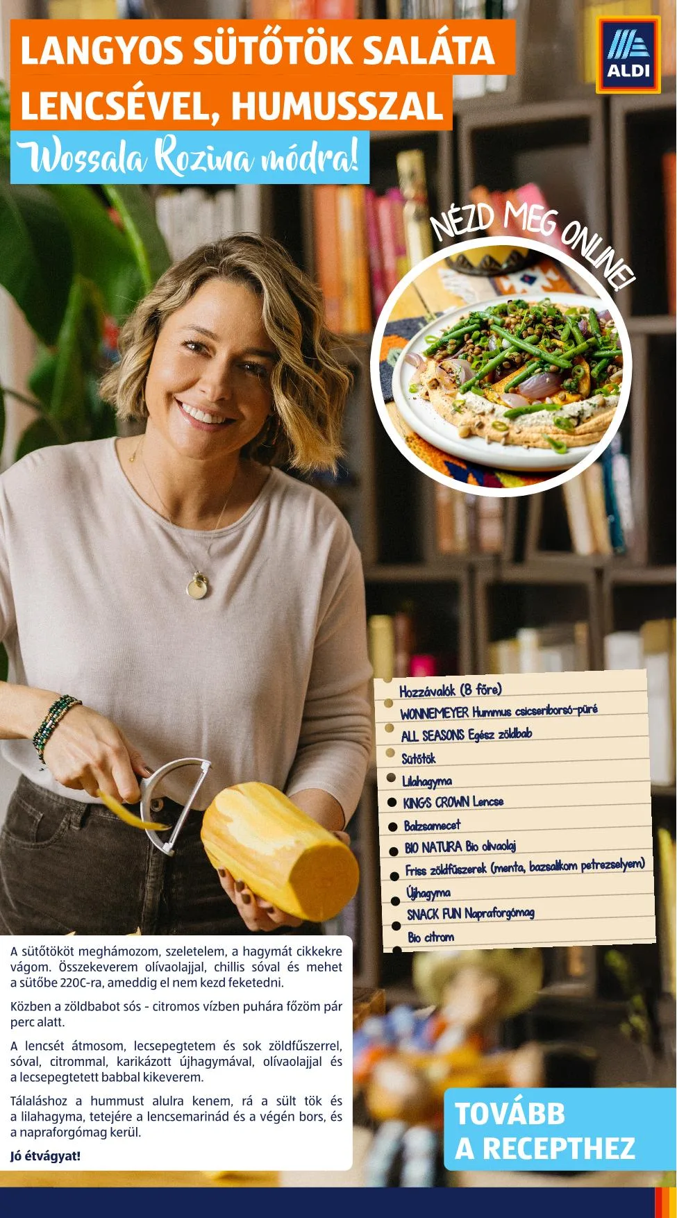 - Langyos sütőtök saláta lencsével, humusszal