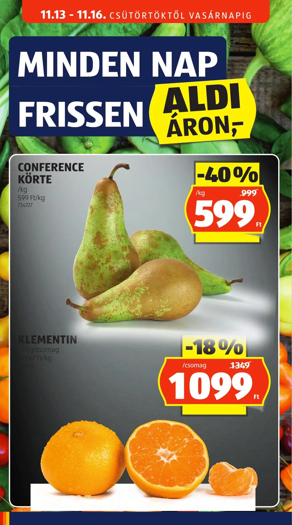 - Conference körte: 599 Ft/kg