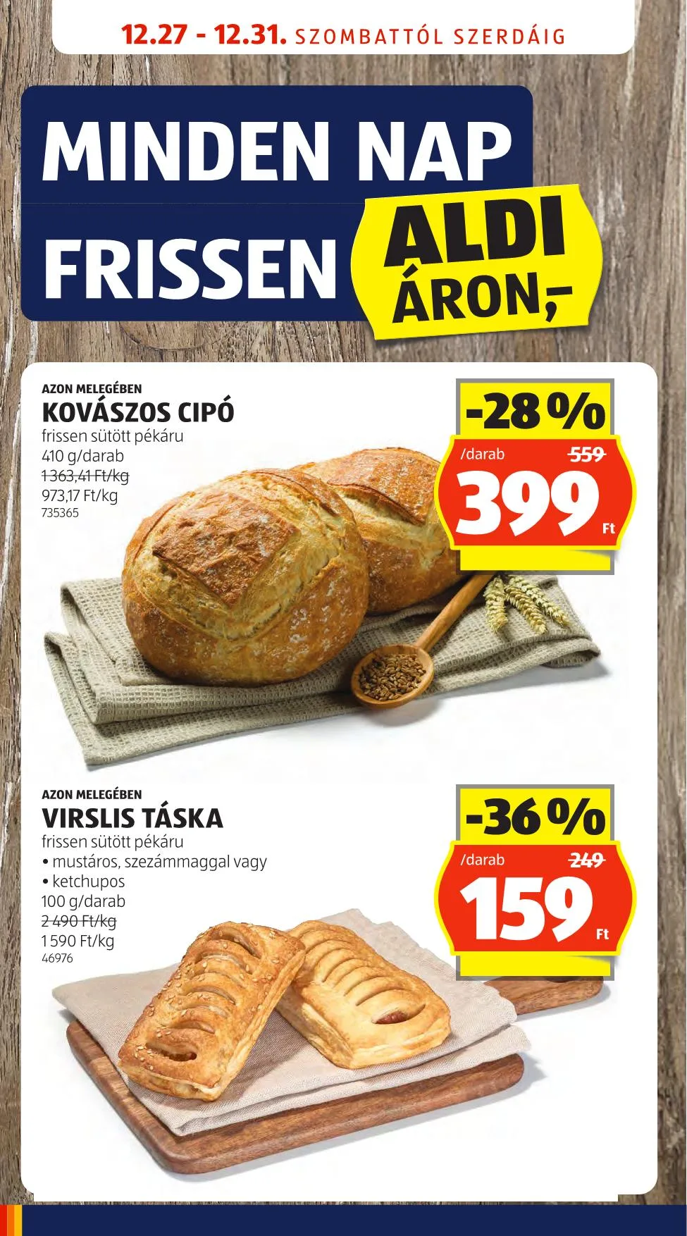 Ajánlat időtartama: 12.27 – 12.31, szombattól szerdáig