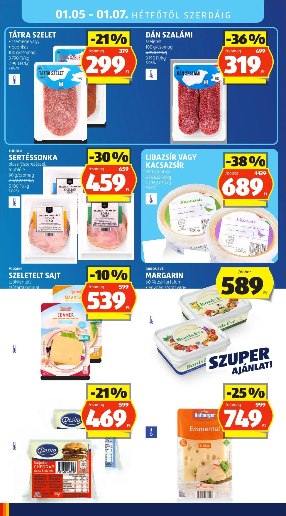 - **Tehéntúró** – 250 g Ár: 499 Ft -40% / pohár