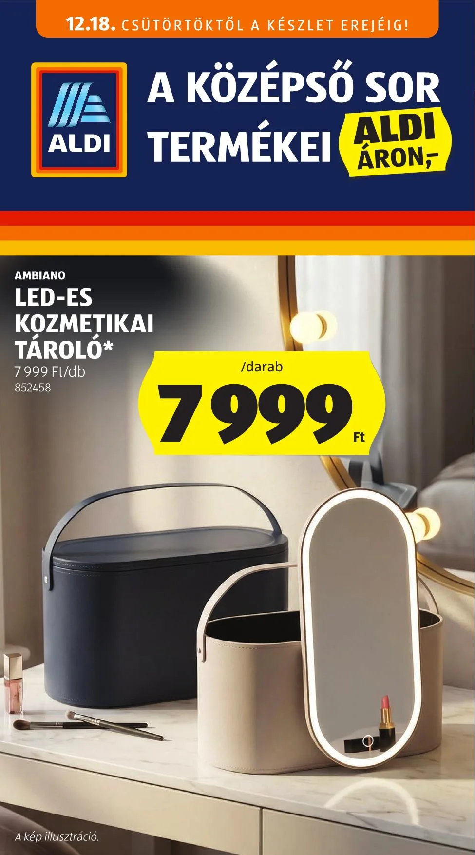 AldiDiszkontÉlelmiszer Aldi Középső Sor Akciós Újság 2025.12.18. Csütörtöktől Érvényesség kezdete: 20251218 Érvényesség Vége: 20251218 Szerkesztette: Szilveszter Közzétéve: 2025.12.16. Megosztás: FacebookTwitterPinterestWhatsApp 12.18. csütörtöktől a készlet erejéig! A középső sor ALDI TERMÉKEI ALDI ÁRON AMBIANO LED-ES KOZMETIKAI TÁROLÓ* 7 999 Ft/db 852458 / darab 7999.PL Ft A kép illusztráció. Következő oldal betöltésePages: 1234567891011121314 Szilveszterhttps://lapozhato-akcios-ujsag.hu Megosztás FacebookTwitterPinterestWhatsApp Akciós Újság Feliratkozás Feliratkozás ━ Hasonló Újságok Diszkont Lidl Akciós Újság 2025.12.18. Csütörtöktől 2025.12.16. 0 LIDL Boldog karácsonyt kívánunk! Igazán megéri. Akciós termékek: Húsfarm ... Azúr Drogéria Rossmann Akciós Újság 2025.12.15. Hétfőtől 2025.12.16. 0 Kincentric Rossmann Érvényes: 2025. 12. 15. 12:26 ... Coop Coop Észak-Kelet Akciós Újság 2025.12.18. Csütörtöktől 2025.12.16. 0 30 Coop ÉVE EGYÜTT Észak-Kelet Pro-Coop Zrt. 2025. december 18-31-ig Ajánlatok ... Coop Coop Mecsek Akciós Újság 2025.12.18. Csütörtöktől 2025.12.16. 0 COOP ÉVE EGYÜTT Mini ABC Szuper Érvényes a Mecsekrégió által ellátott... Aldi Aldi Akciós Újság 2025.12.18. Csütörtöktől 2025.12.16. 0 Aldi ajánlatok Friss termékek ... Előző ÚjságCoop Alföld Akciós Újság 2025.12.18. CsütörtöktőlKövetkező ÚjságAuchan Szupermarket Akciós Újság 2025.12.18. Csütörtöktől