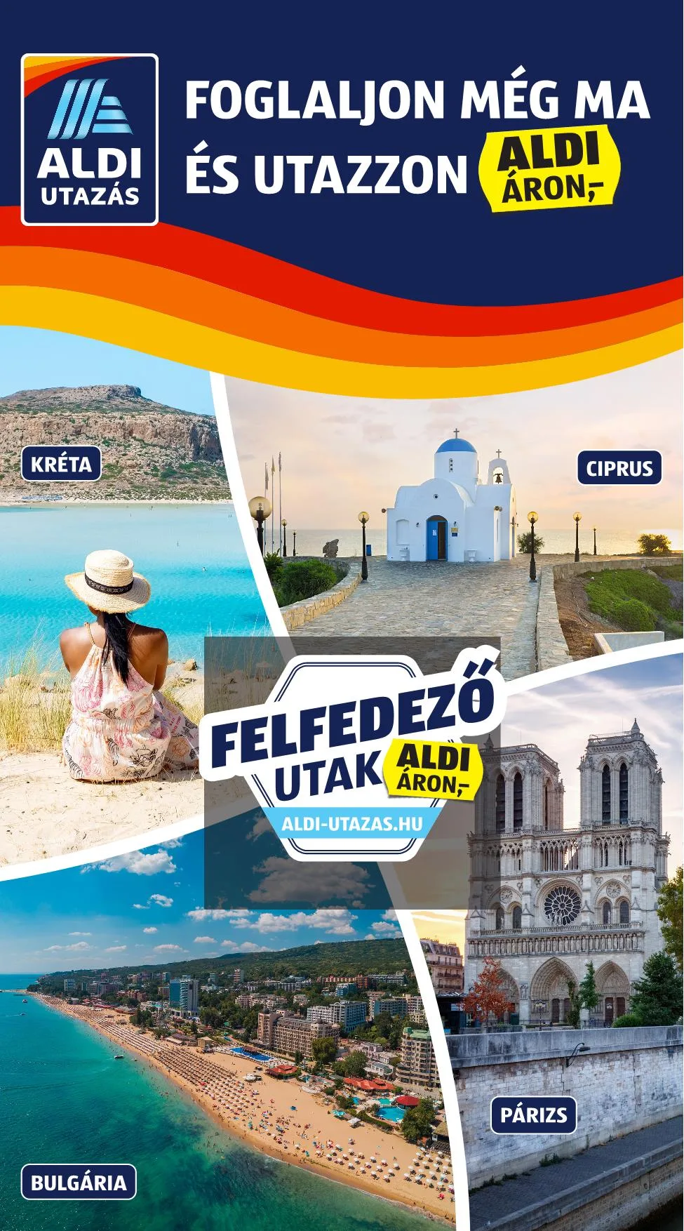 Az utazási ajánlatok tekintetében feltüntetett árak forintban (Ft/HUF), bizonyos feltüntetett esetekben euróban (E/EUR) értendőek. Az ajánlatok csak a megadott időszakban, a kontingensenként meghatározott elérhetőség függvényében foglalhatóak. Az utazási időpontok az egyes ajánlatoknál találhatóak. Az ALDI Magyarország Élelmiszer Bt. (ALDI) nem szervezője és nem közvetítője az utazásoknak és a NAGY ELŐFOGLALÁSI AKCIÓNAK. Valamennyi utazás és a NAGY ELŐFOGLALÁSI AKCIÓ szervezője, ill. közvetítője az Eurotours GmbH.