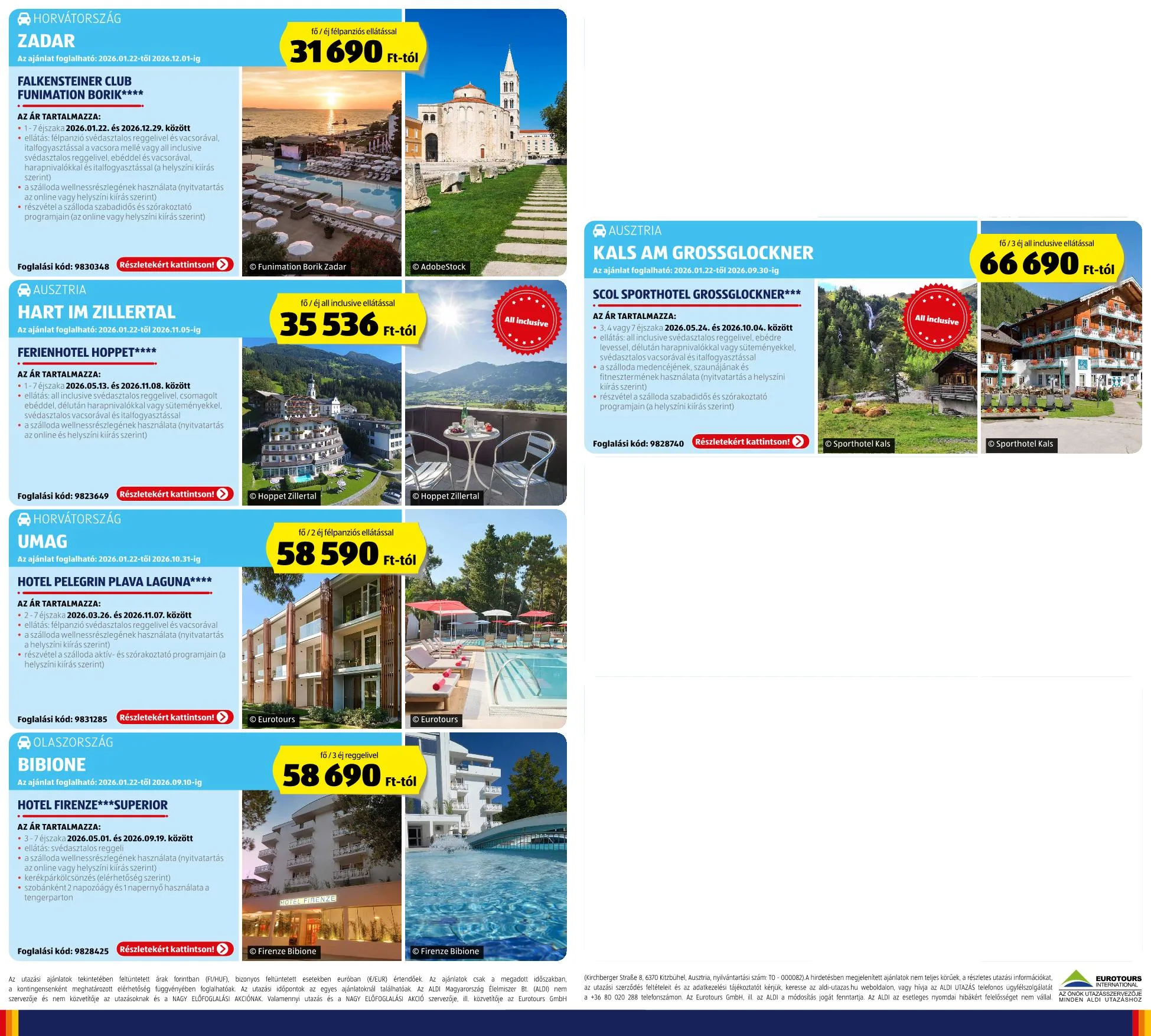 Az ALDI Magyarország Élelmiszer Bt. (ALDI) nem szervezője és nem közvetítője az utazásoknak, a NAGY ELŐFOGLALÁSI AKCIÓNAK. Valamennyi utazás és a NAGY ELŐFOGLALÁSI AKCIÓ szervezője, ill. közvetítője az Eurotours GmbH (Kirchberger Straße 8, 6370 Kitzbühel, Ausztria, nyilvántartási szám: TO – 000082).