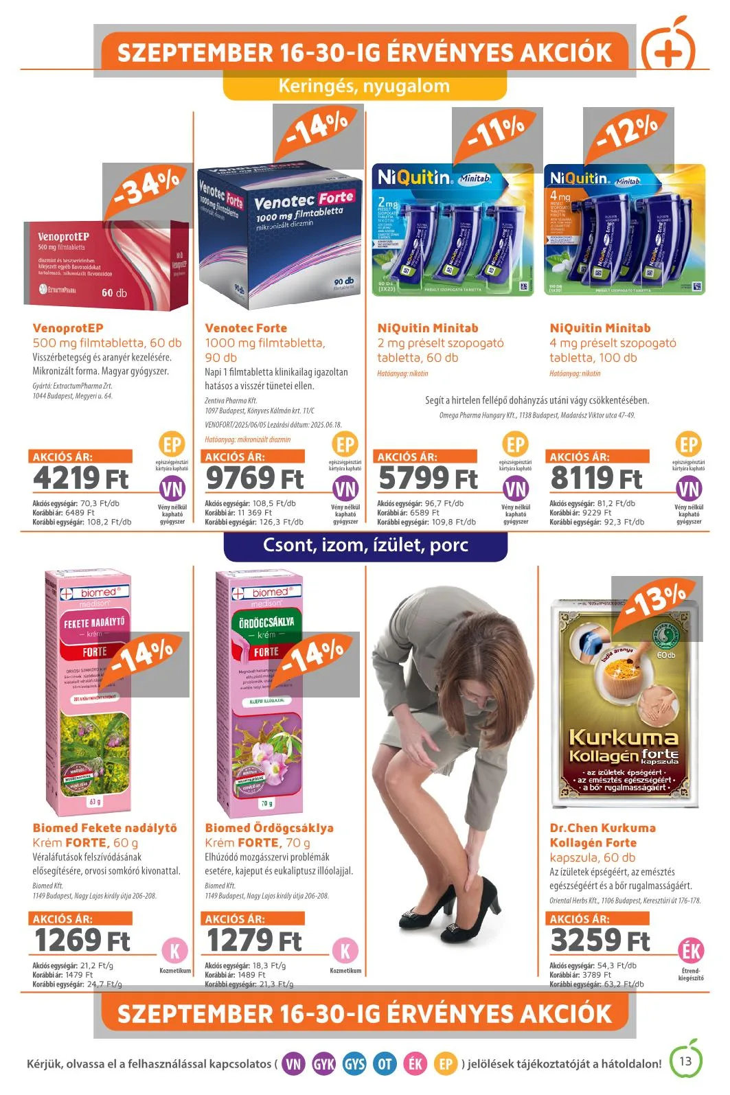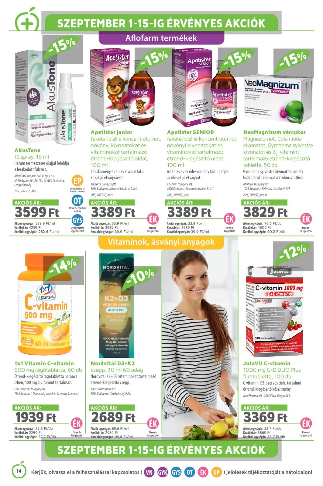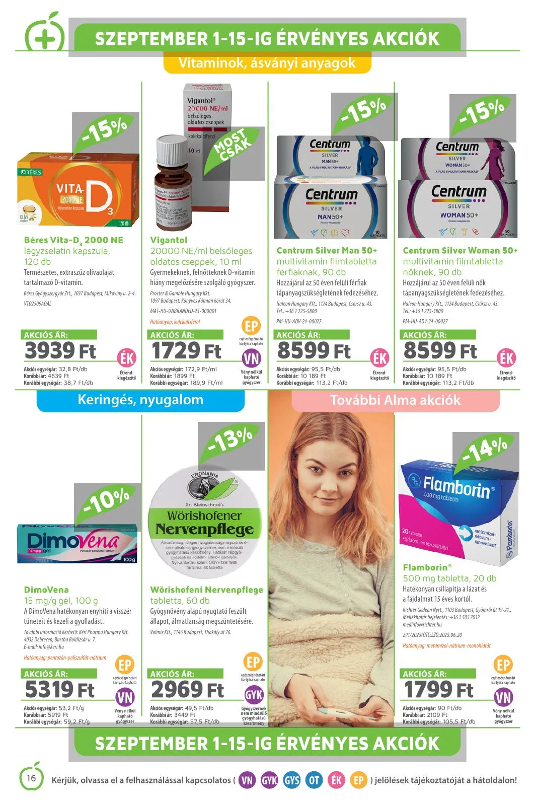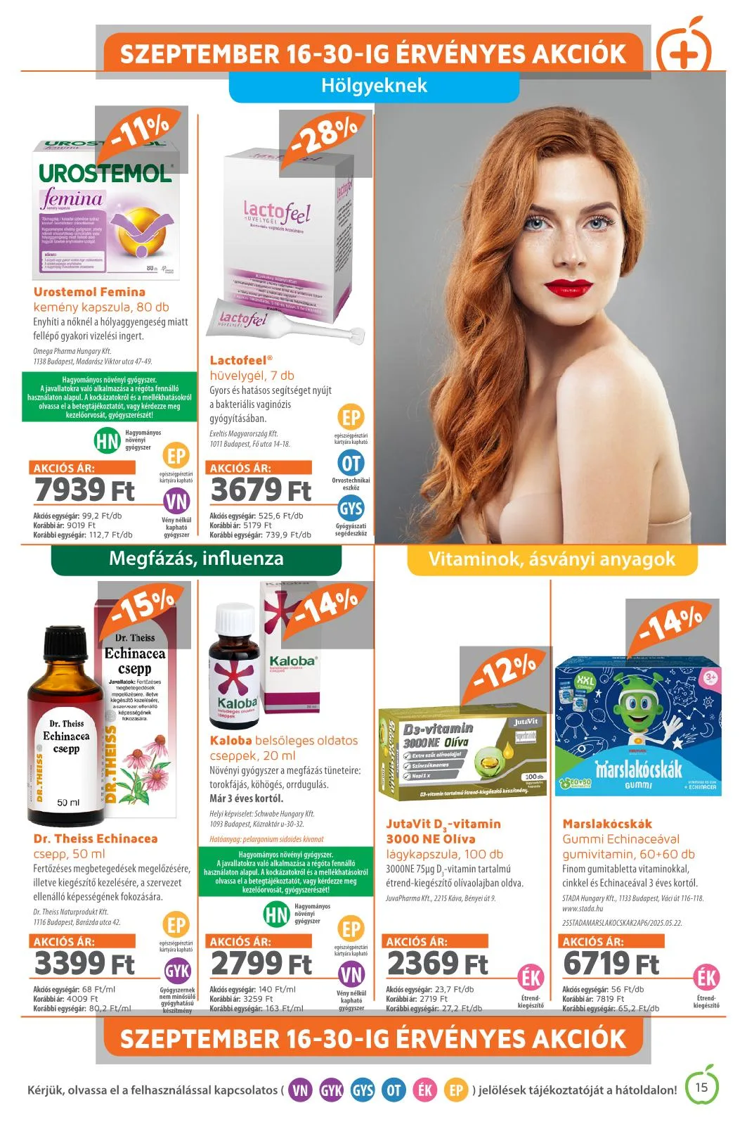 Szeptember 16-30-ig érvényes akciók. Kérjük, olvassa el a felhasználással kapcsolatos (VN GYK GYS OT ÉK EP) jelölések tájékoztatóját a hátoldalon!
