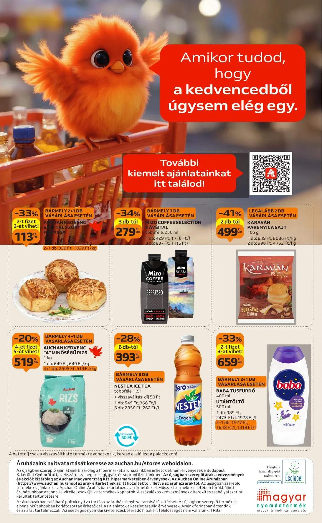 Az újságban szereplő ajánlataink kizárólag a hipermarket áruházainkban érhetők el. Az árak, kedvezmények és akciók kizárólag az Auchan Magyarország Kft. hipermarketeiben érvényesek. Az Auchan Online Áruházban az árak eltérhetnek, illetve az áruházi áraktól. Műszaki termékek esetében csak Qilive termékek kaphatók.