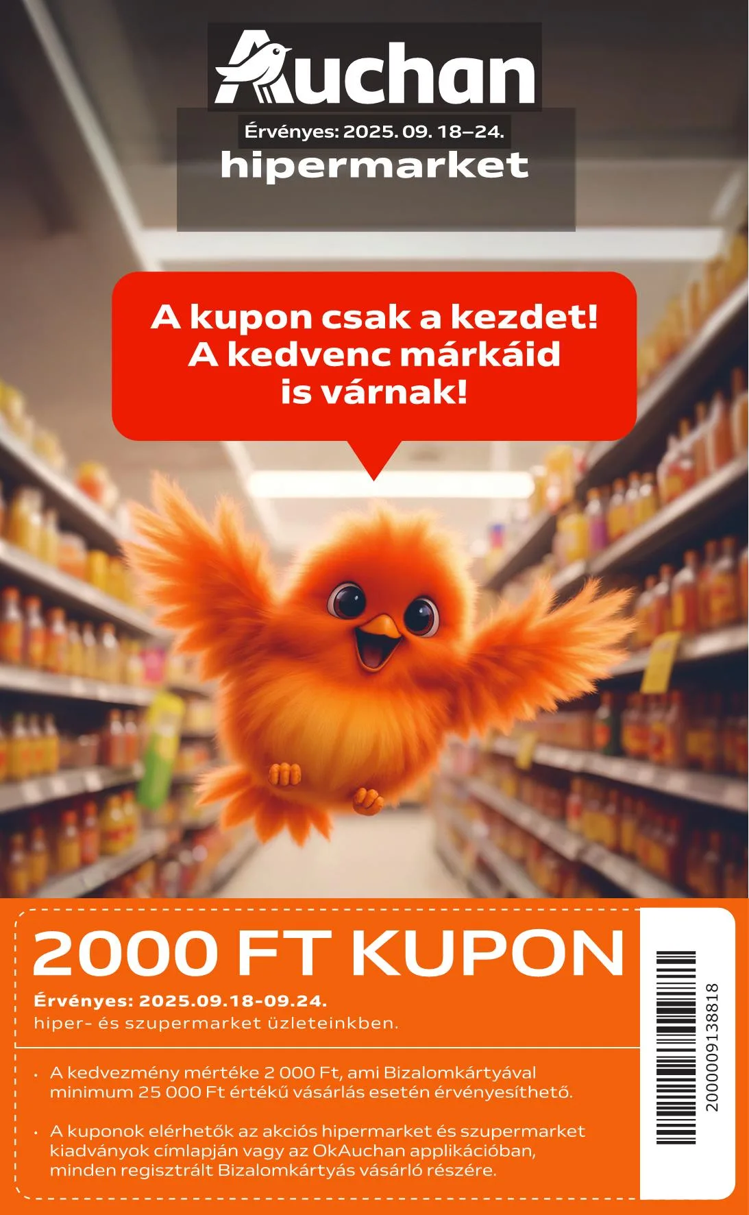 A kuponok elérhetők az akciós hipermarket és szupermarket kiadványok címlapján vagy az OkAuchan applikációban, minden regisztrált Bizalomkártyás vásárló részére.
