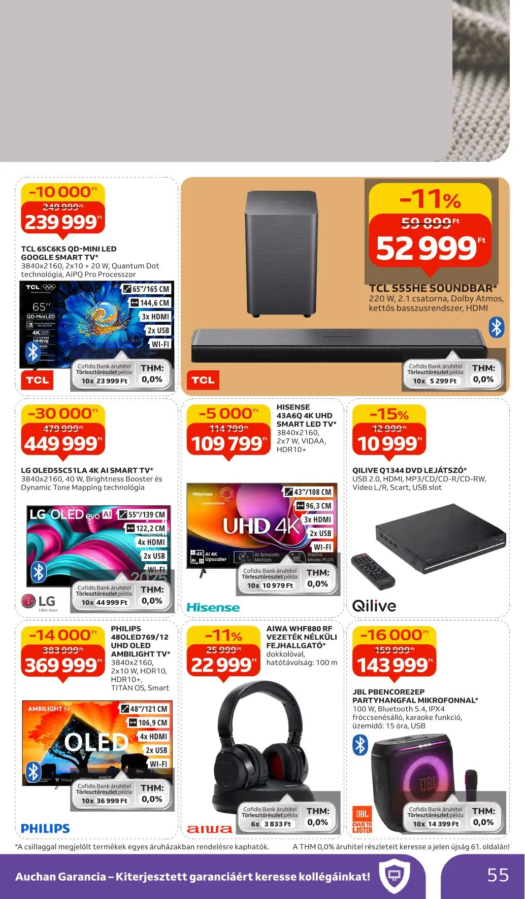 Az Auchan Magyarország Kft. a Magyar Cofidis Bank Zrt. (Bank) függő ügynökeként jár el. Részletek az Eladói Pultnál, az általános szerződési feltételekben és a vonatkozó hirdetményekben: www.auchan.hu/aruhitel/ajanlatok.