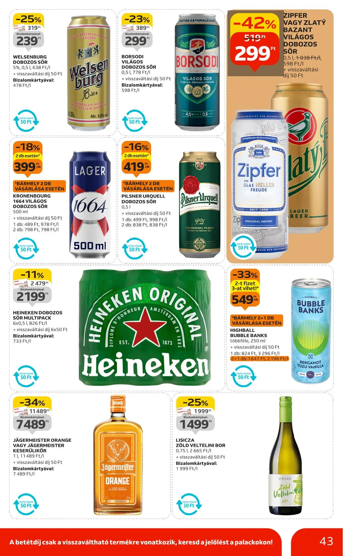 Alkohol: 0,5L; 778 Ft/l + visszaváltási díj 50 Ft