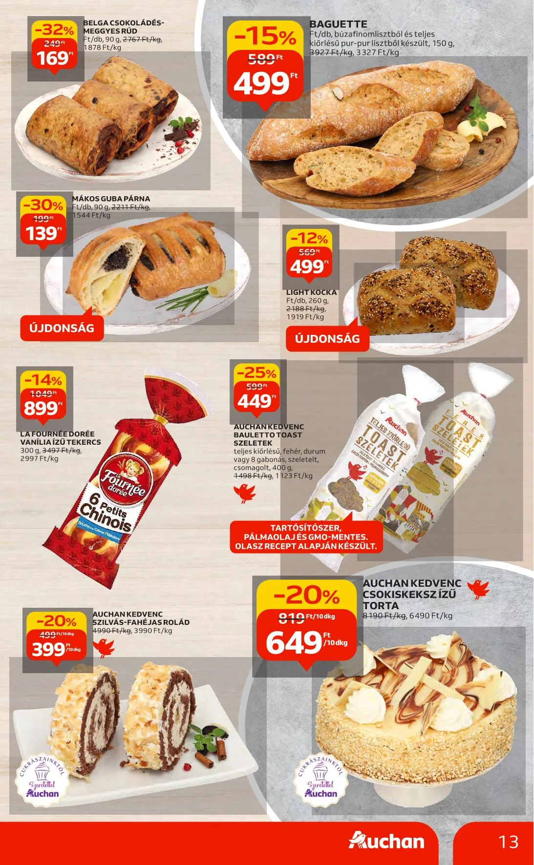 - -25% Auchan Kedvenc Bauletto toast szeletek: 599 Ft, 449 Ft, teljes kiőrlésű, fehér, durum vagy 8 gabonás, szeletelt, csomagolt, 400 g, 1498 Ft/kg, 1123 Ft/kg
