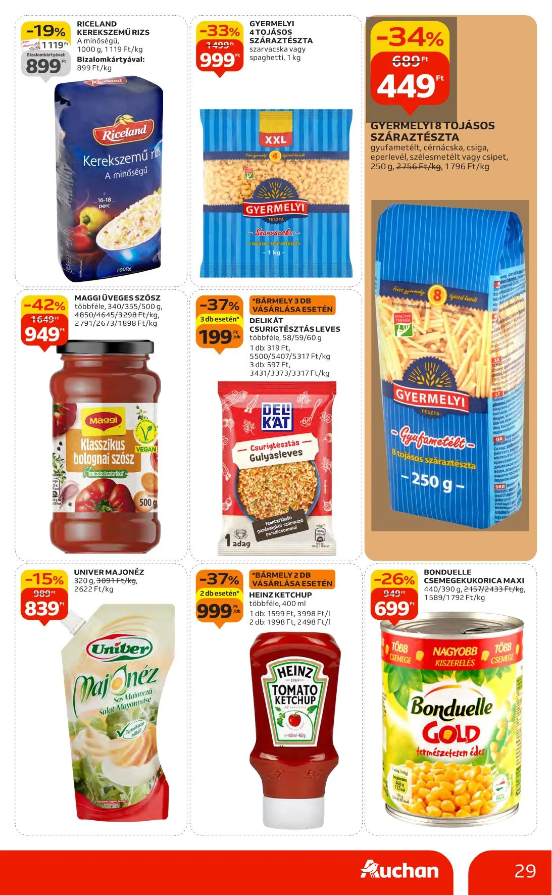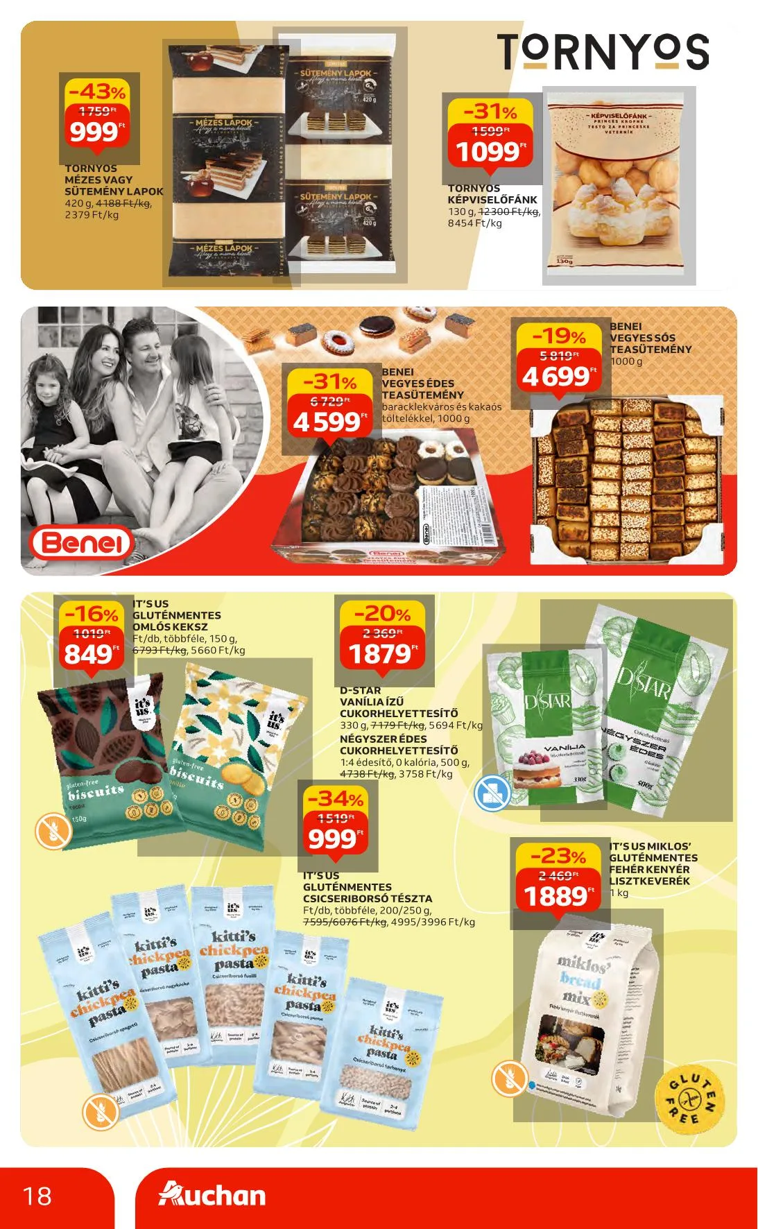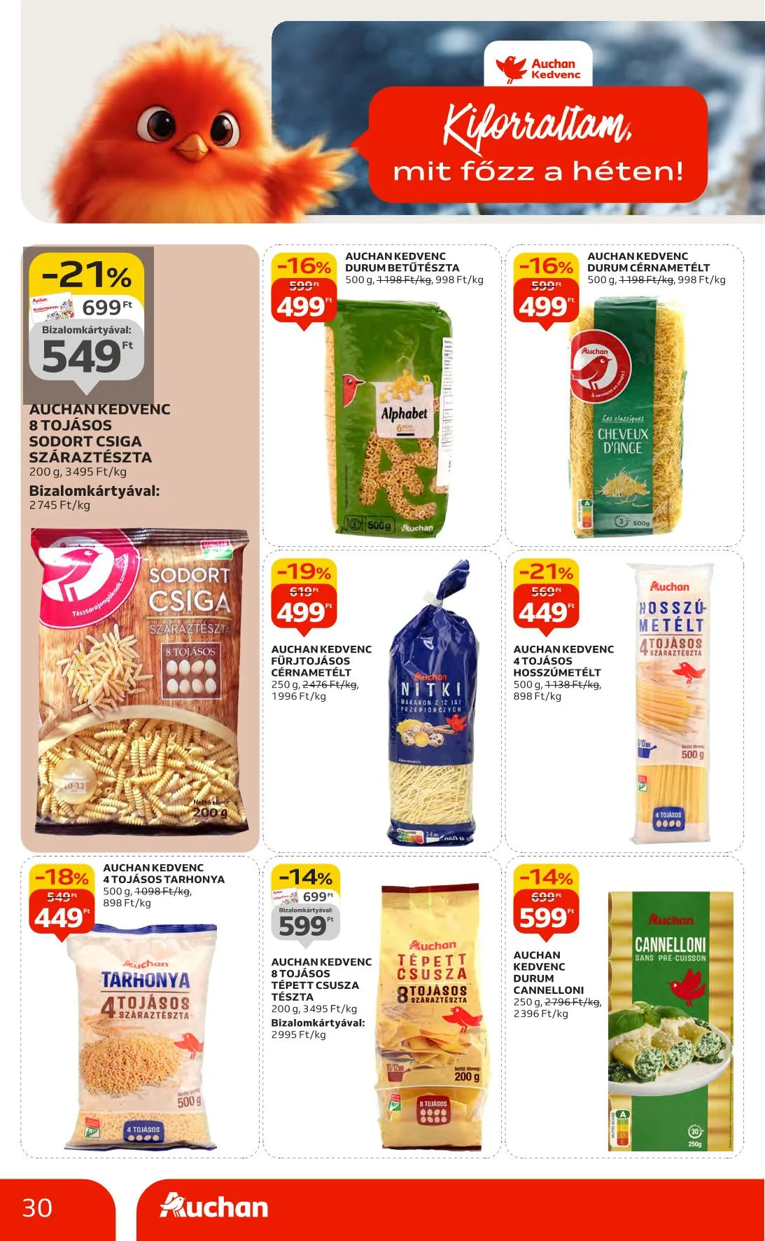 - -25% Auchan Kedvenc Bauletto toast szeletek: 599 Ft, 449 Ft, teljes kiőrlésű, fehér, durum vagy 8 gabonás, szeletelt, csomagolt, 400 g, 1498 Ft/kg, 1123 Ft/kg