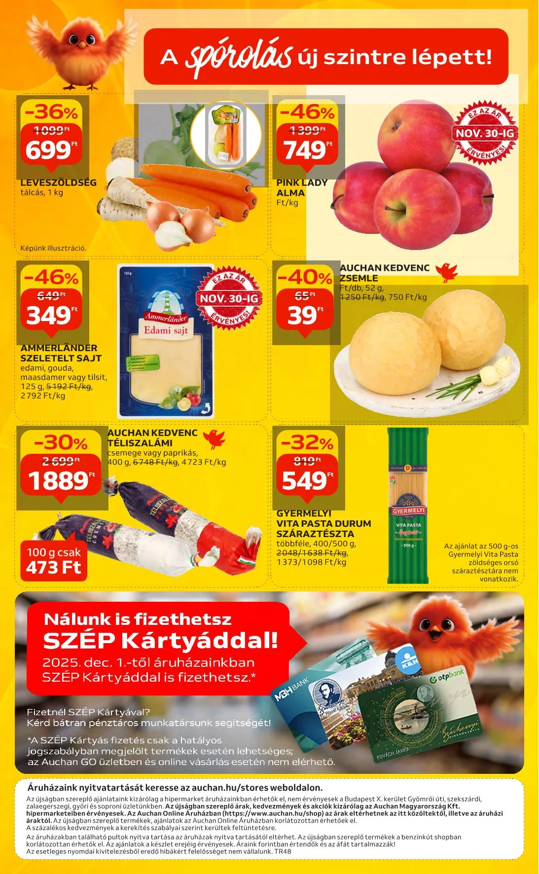 Az újságban szereplő árak, kedvezmények és akciók kizárólag az Auchan Magyarország Kft. hipermarketeiben érvényesek. Az Auchan Online Áruházban az árak eltérhetnek az itt közöltektől, illetve az áruházi áraktól.