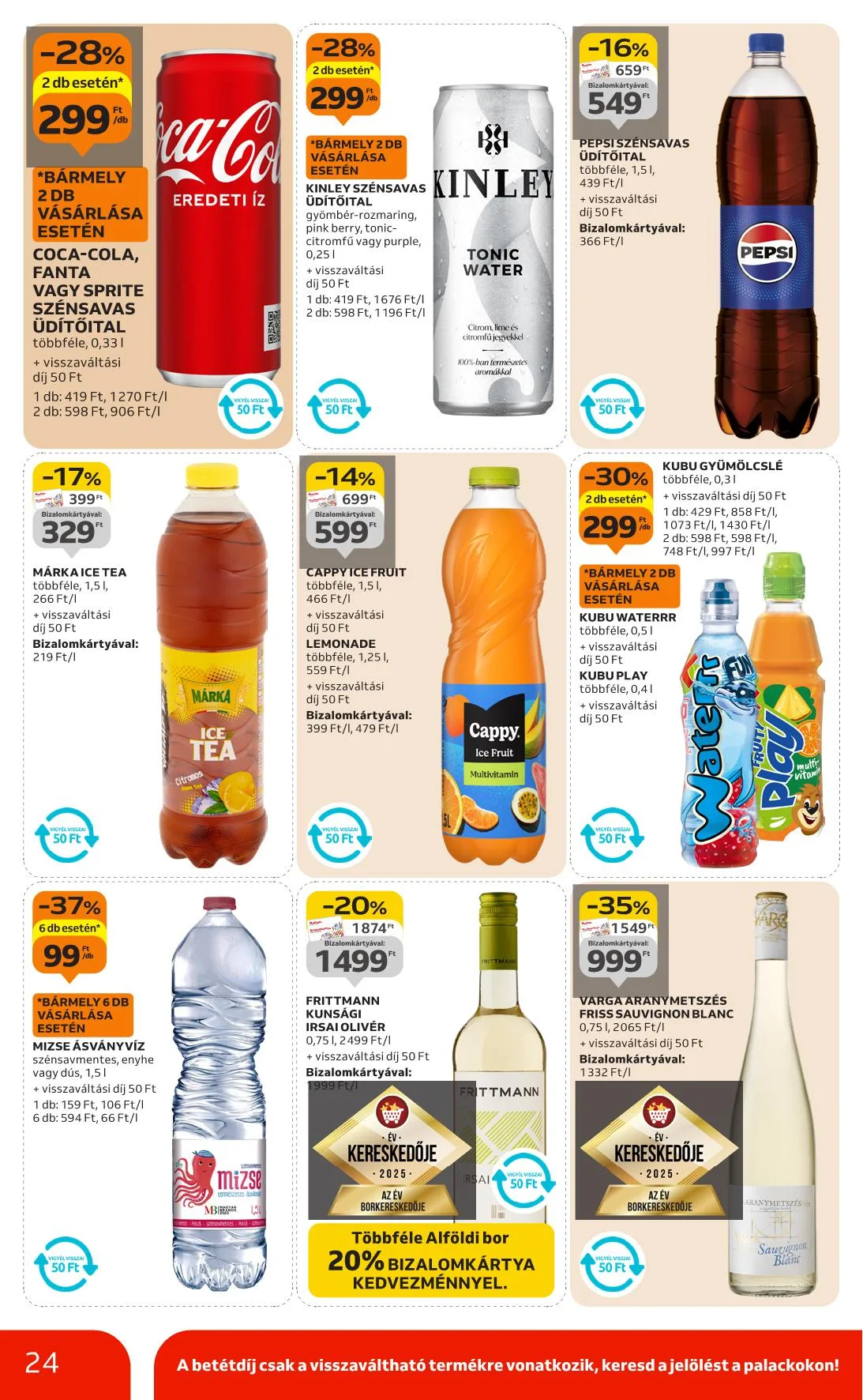 Ár: 1270 Ft / l + visszaváltási díj 50 FtA betétdíj csak a visszaváltható termékre vonatkozik, keresd a jelölést a palackokon!