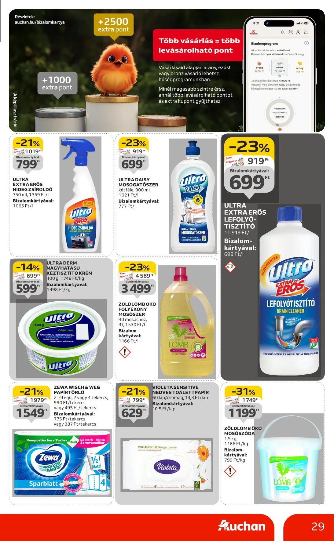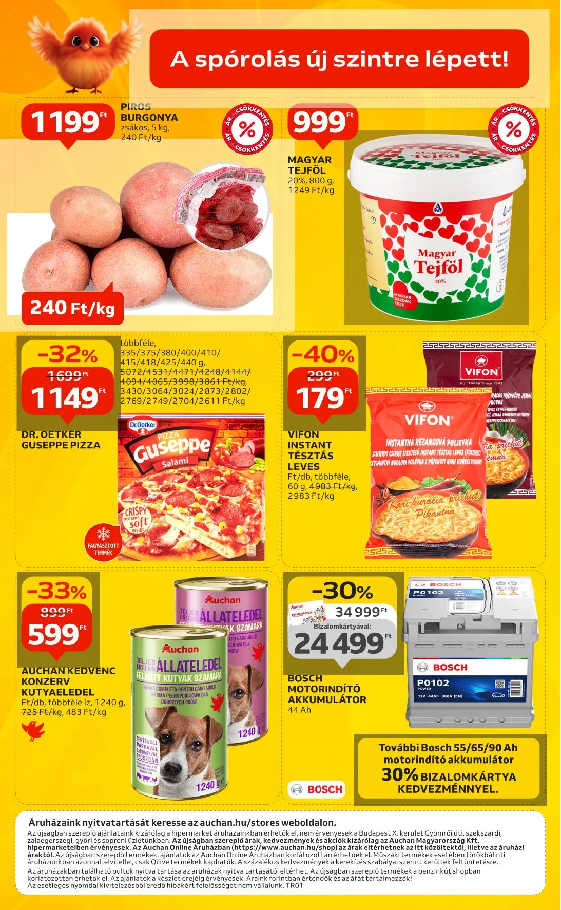 Az újságban szereplő árak, kedvezmények és akciók kizárólag az Auchan Magyarország Kft. hipermarketeiben érvényesek. Az Auchan Online Áruházban az árak eltérhetnek az itt közöltektől.