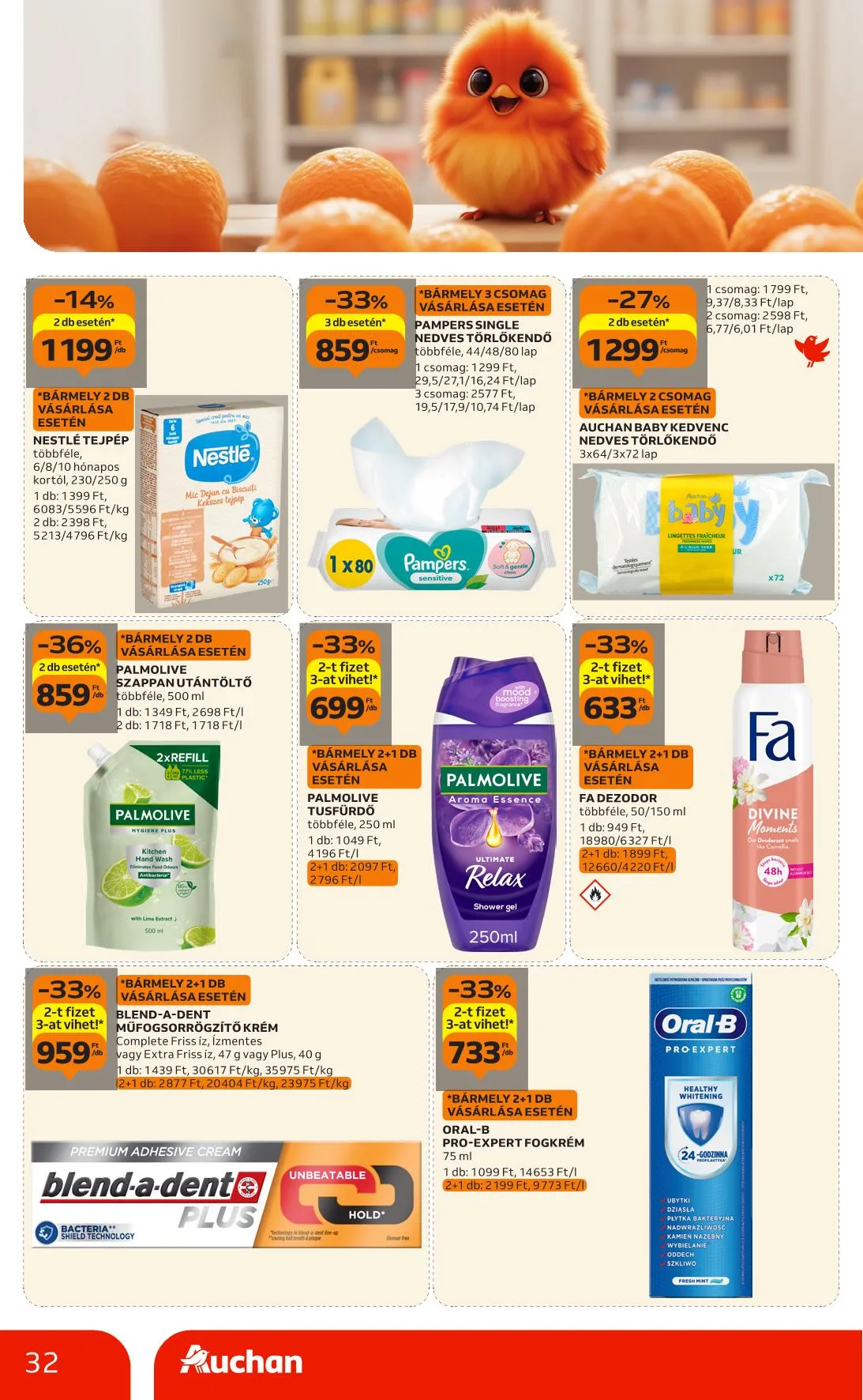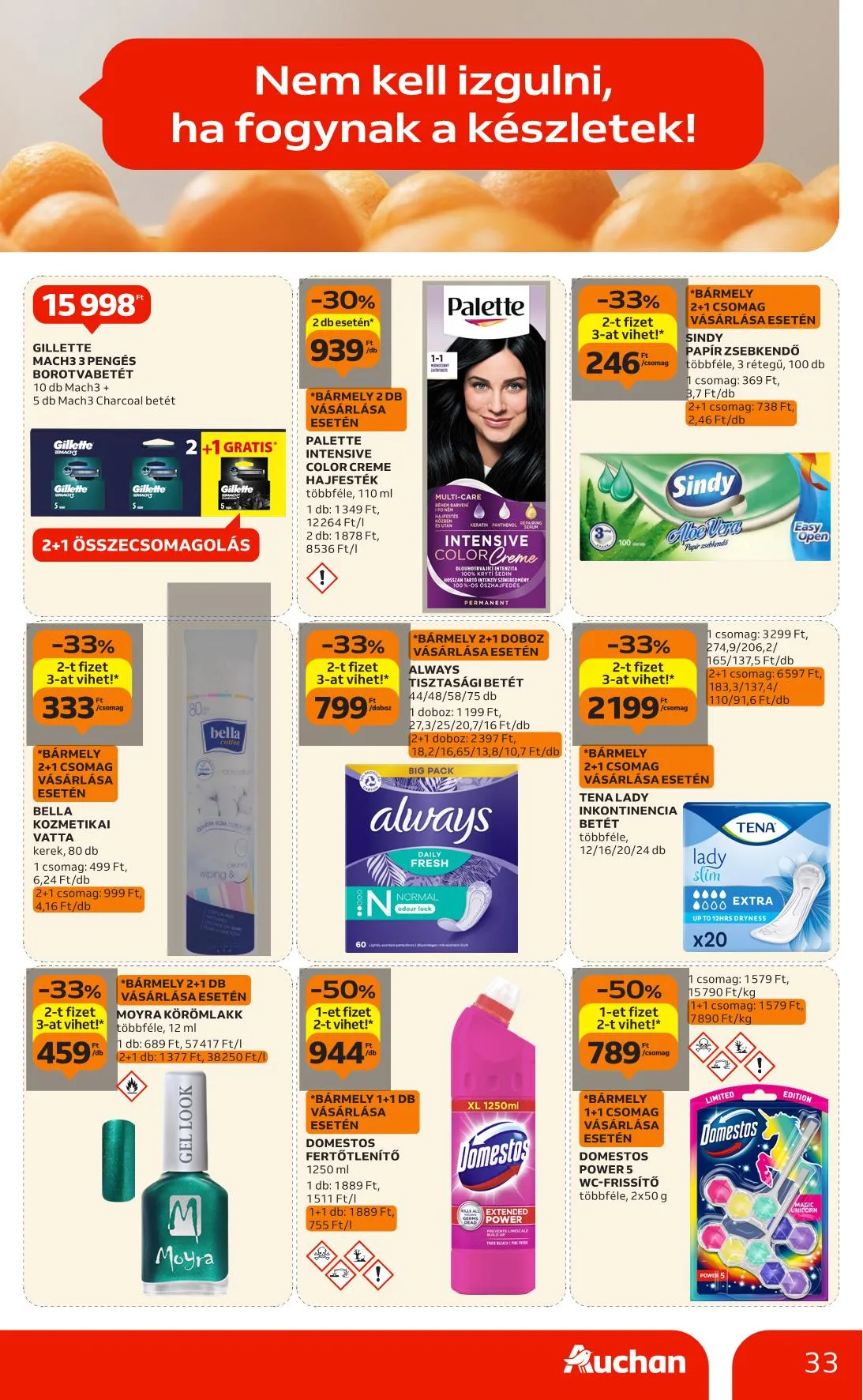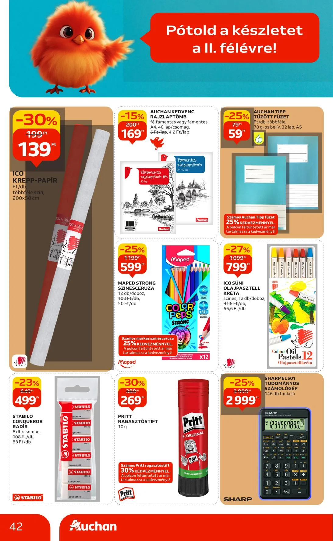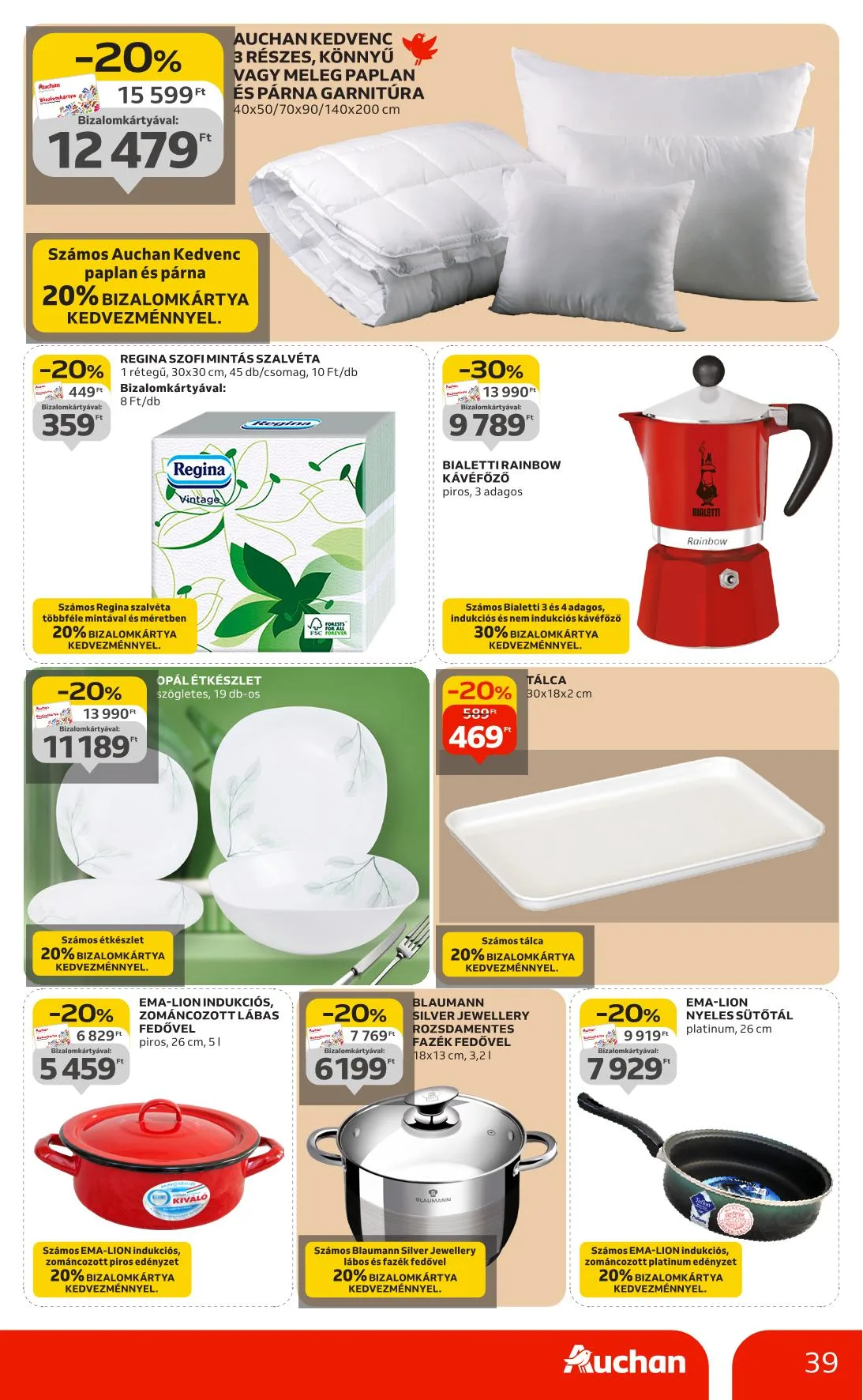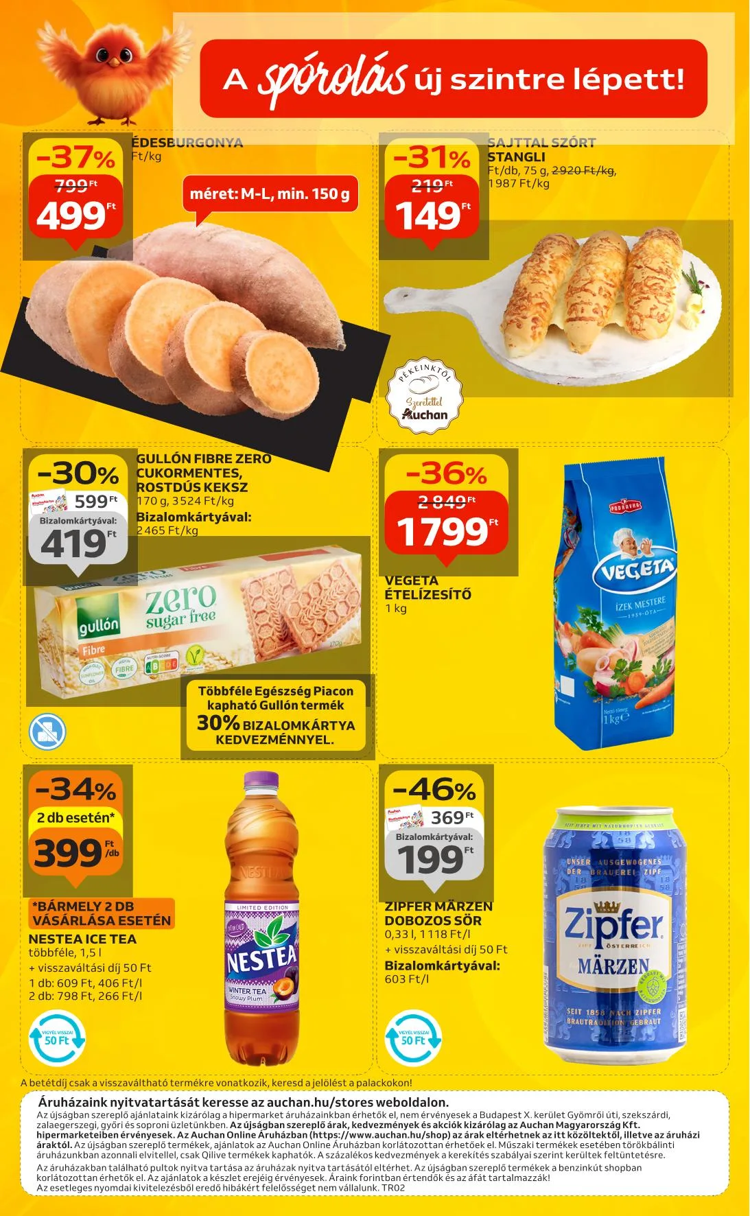 Ajánlataink kizárólag a hipermarket áruházainkban érhetők el, nem érvényesek a Budapest X. kerület Gyömrői úti, szekszárdi, zalaegerszegi, győri és soproni üzletünkben. Az újságban szereplő árak, kedvezmények és akciók kizárólag az Auchan Magyarország Kft. hipermarketeiben érvényesek. Az Auchan Online Áruházban (https://www.auchan.hu/shop) az árak eltérhetnek az itt közöltektől, illetve az áruházi áraktól. Az ajánlatok a készlet erejéig érvényesek. Áraink forintban értendők és az áfát tartalmazzák!