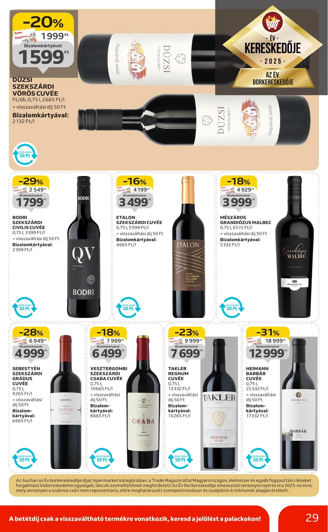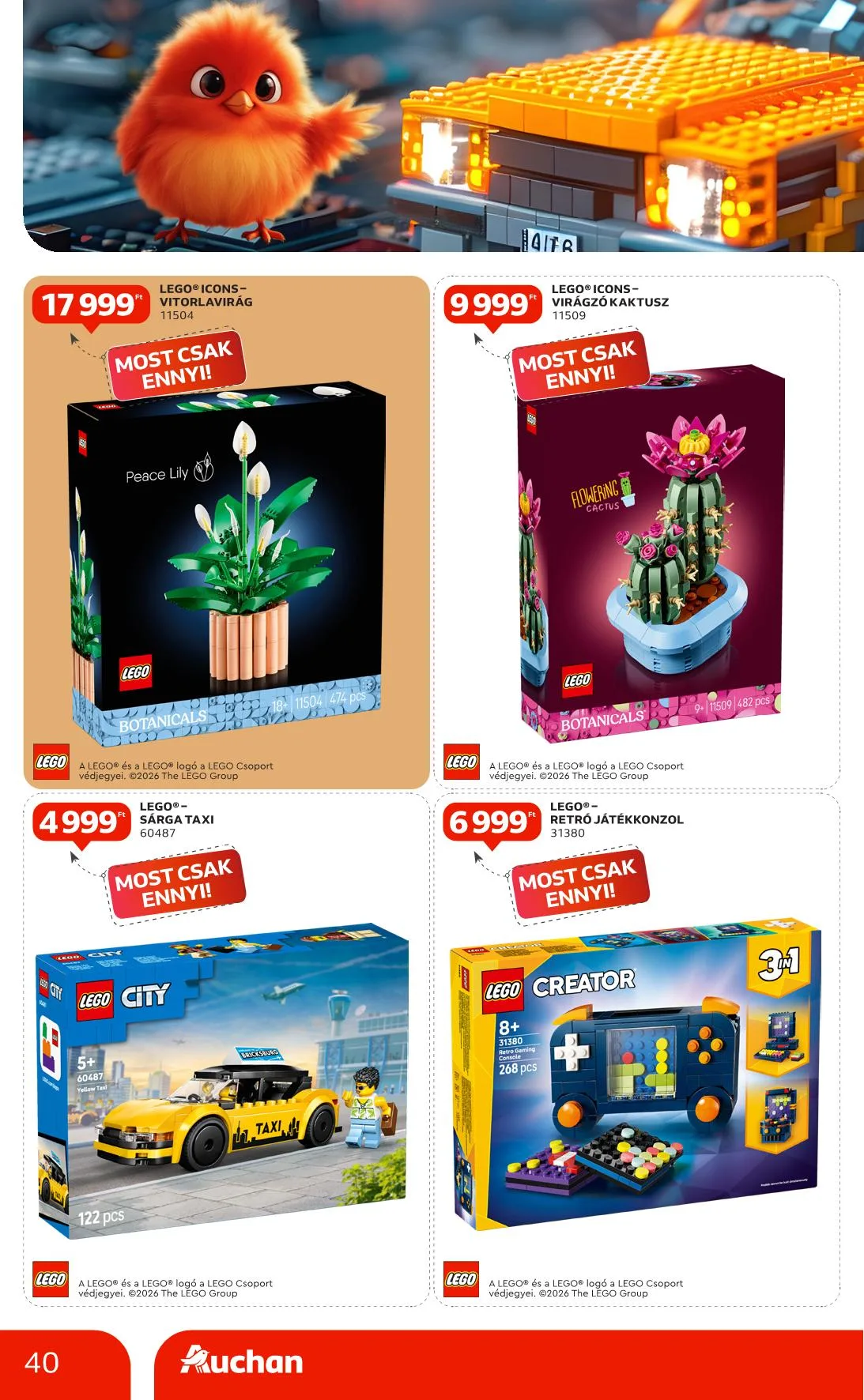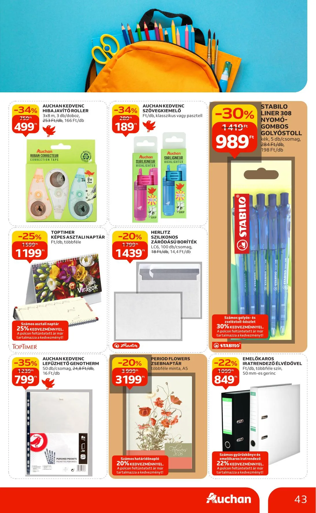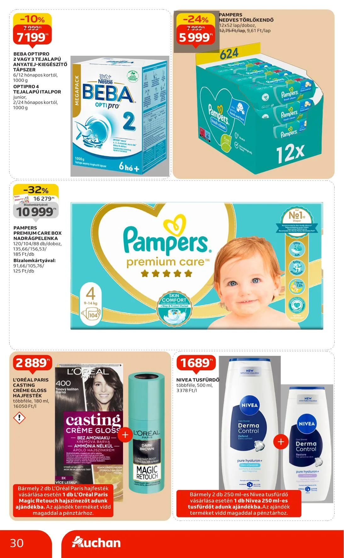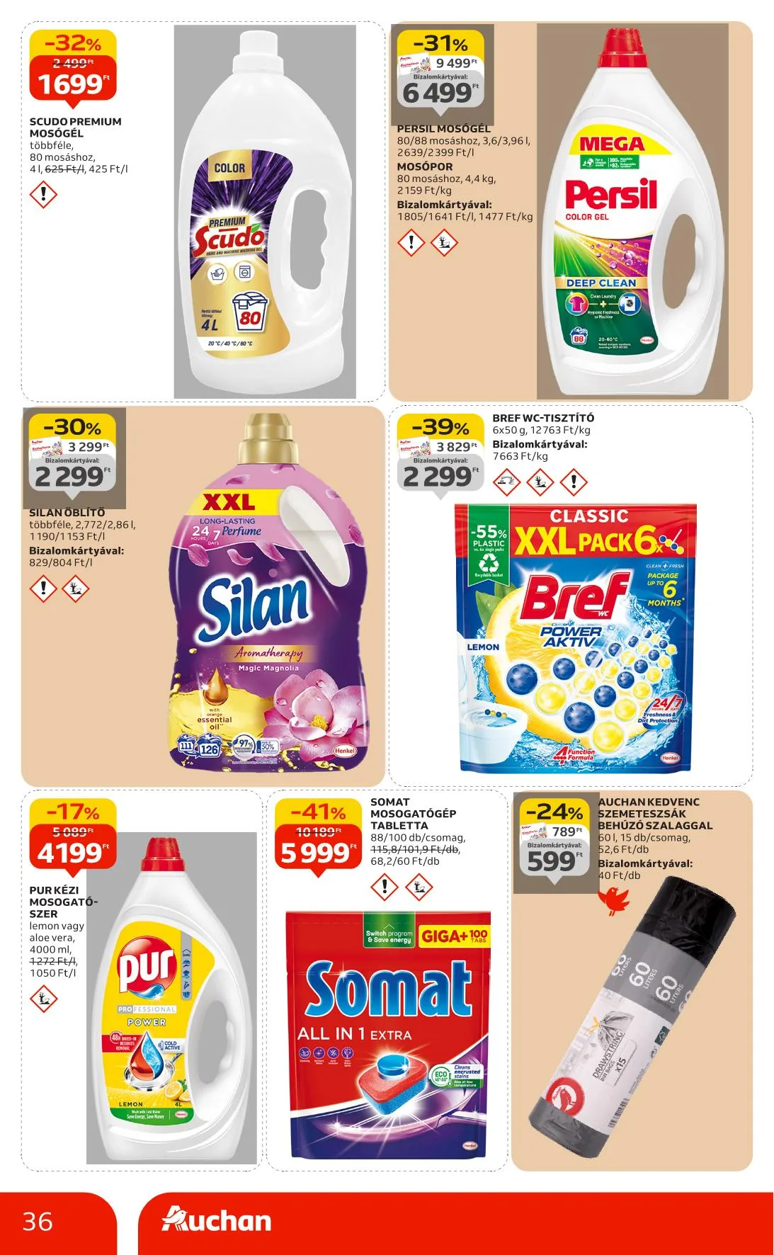 Ajánlataink kizárólag a hipermarket áruházainkban érhetők el, nem érvényesek a Budapest X. kerület Gyömrői úti, szekszárdi, zalaegerszegi, győri és soproni üzletünkben. Az újságban szereplő árak, kedvezmények és akciók kizárólag az Auchan Magyarország Kft. hipermarketeiben érvényesek. Az Auchan Online Áruházban (https://www.auchan.hu/shop) az árak eltérhetnek az itt közöltektől, illetve az áruházi áraktól. Az ajánlatok a készlet erejéig érvényesek. Áraink forintban értendők és az áfát tartalmazzák!