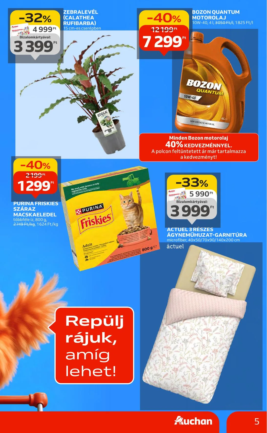- Auchan ESL tej: 2,8%, 1139 Ft, Bizalomkártyával: 969 Ft
