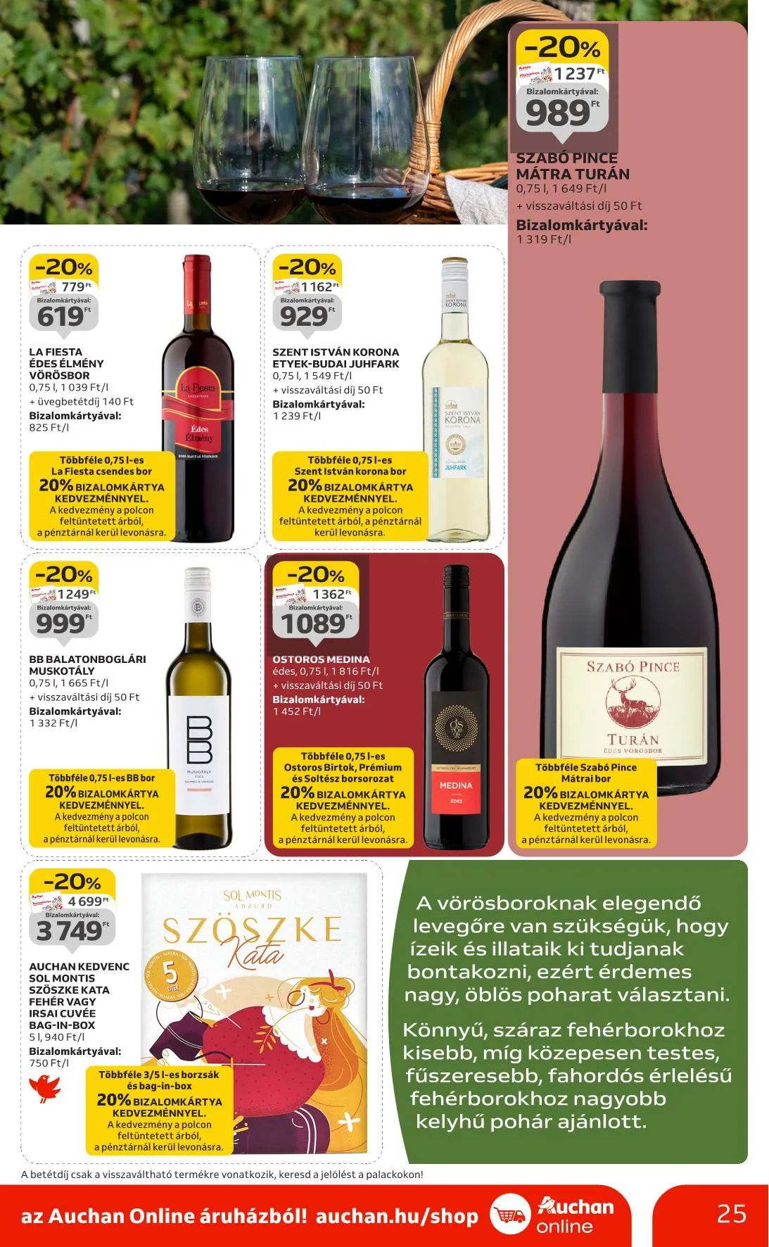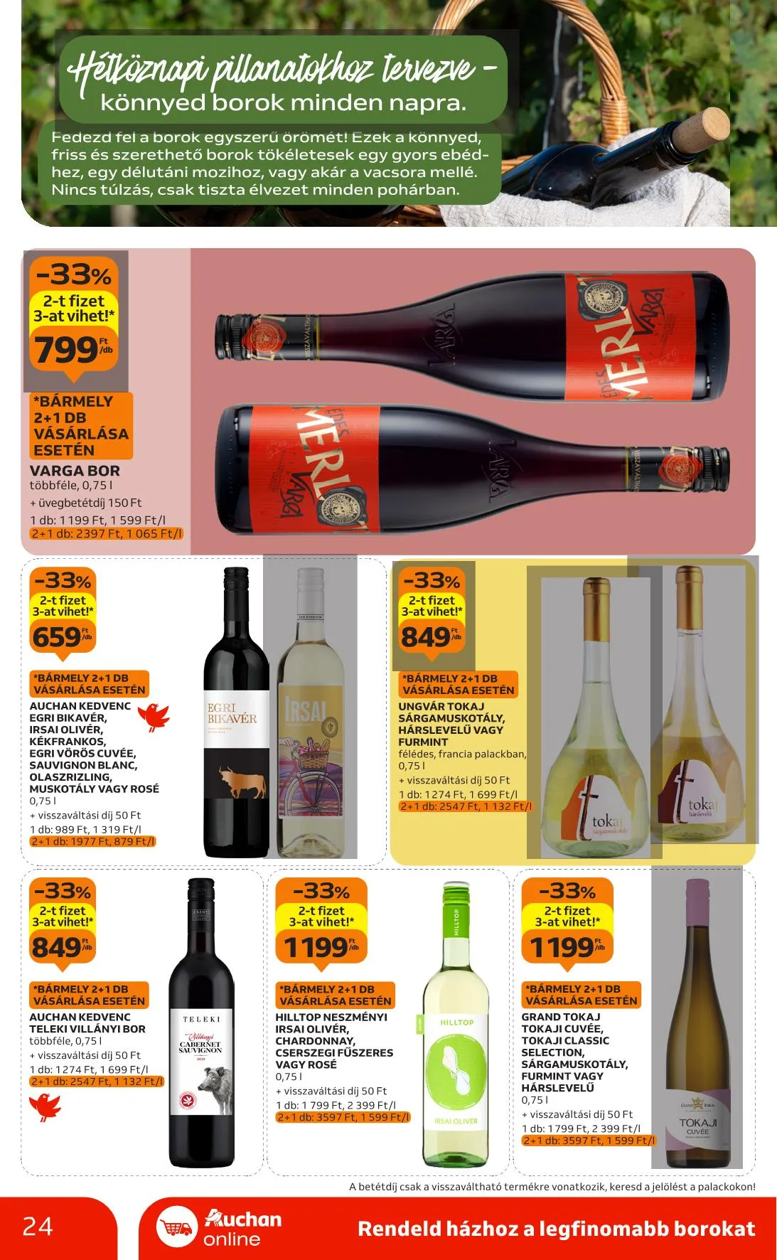 Vörös, fehér vagy rosé, 0,75 l