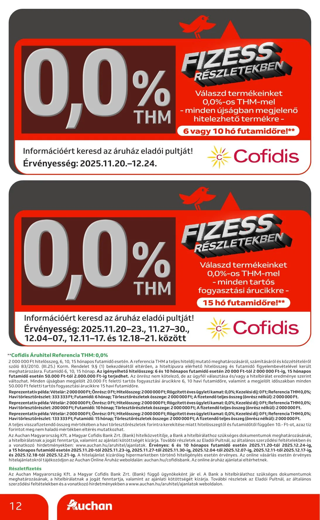 Hitelajánlat kizárólag hipermarketben történő hiteligénylés esetén érvényes. Online vásárlás esetén érvényes hitelajánlatokról tájékozódjon az Auchan Online Áruház weboldalán: auchan.hu/cofidisbank. Az online áruház ajánlatai eltérhetnek.