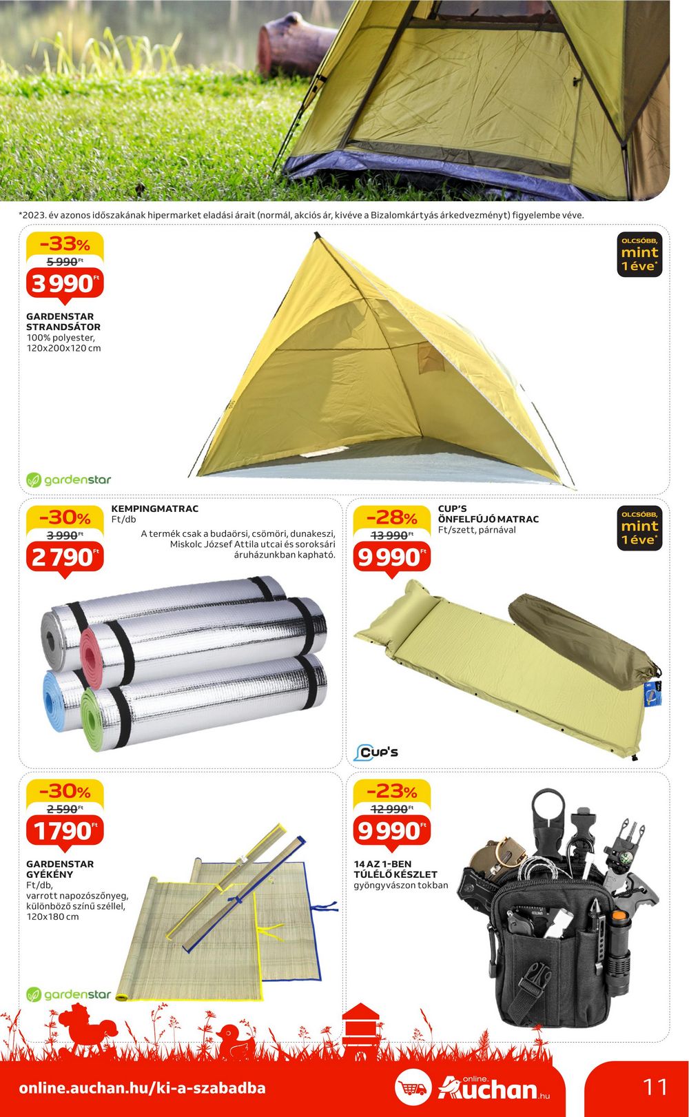 *2023. év azonos időszakának hipermarket eladási árait (normál, akciós ár, kivéve a Bizalomkártyás árkedvezményt) figyelembe véve. -33% 5.990 Ft 3990** OLCSÓBB, mint 1 éve* GARDENSTAR STRANDSÁTOR 100% polyester, 120x200x120 cm gardenstar -30% 3.990 2790 KEMPINGMATRAC Ft/db A termék csak a budaörsi, csömöri, dunakeszi, Miskolc József Attila utcai és soroksári áruházunkban kapható. -28% 13-990 9990 -30% 2-590Ft 1790″ CUP’s -23% 12-990 9990** GARDENSTAR GYÉKÉNY Ft/db, varrott napozószőnyeg, különböző színű széllel, 120×180 cm gardenstar CUP’S ÖNFELFÚJÓMATRAC Ft/szett, párnával OLCSÓBB, mint 1 éve* 14 AZ 1-BEN TÚLÉLŐ KÉSZLET gyöngyvászon tokban. online. online.auchan.hu/ki-a-szabadba Auchan.nu 11