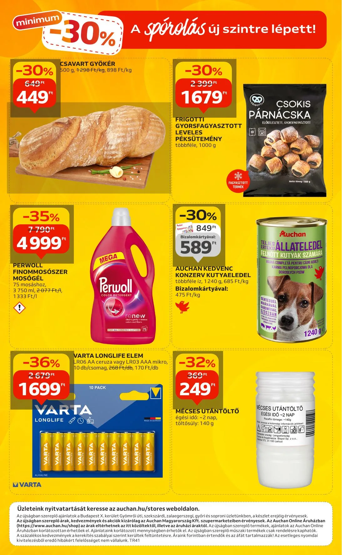 Az újságban szereplő árak, kedvezmények és akciók kizárólag az Auchan Magyarország Kft. szupermarketeiben érvényesek. Az Auchan Online Áruházban (https://www.auchan.hu/shop) az árak eltérhetnek az itt közöltektől, illetve az áruházi áraktól. Az újságban szereplő termékek, ajánlatok az Auchan Online Áruházban korlátozottan érhetőek el. Ajánlataink korlátozott mennyiségben érhetők el. Az újságban szereplő műszaki termékek csak rendelésre kaphatók.