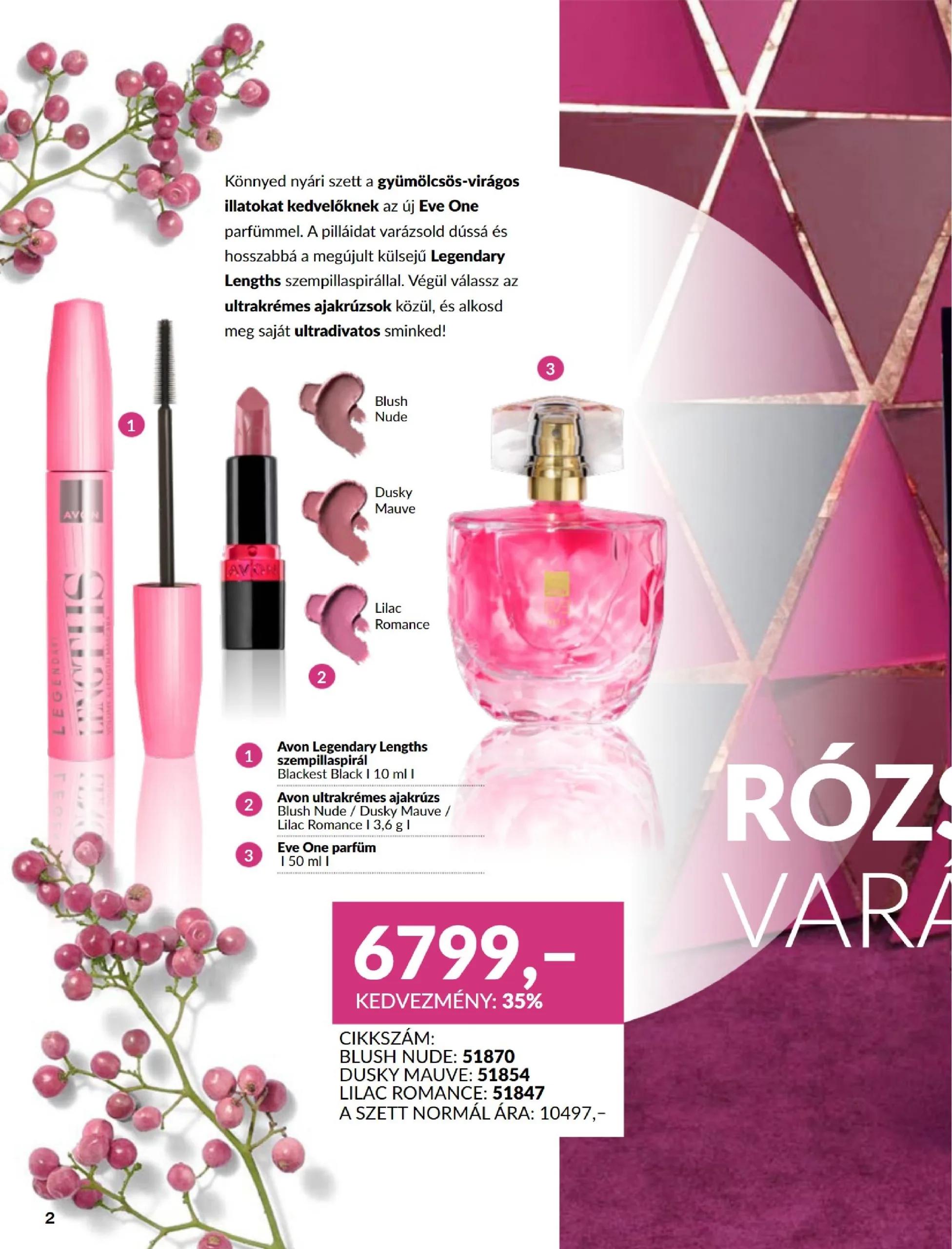 A gyümölcsös-virágos illatokat kedvelőknek ajánljuk az új Eve One parfümmel. A pilláidat varázsold dússá és hosszabbá a megújult külsejű Legendary Lengths szempillaspirállal. Végül válassz az ultrakrémes ajakrúzsok közül, és alkosd meg saját ultradivatos sminked!