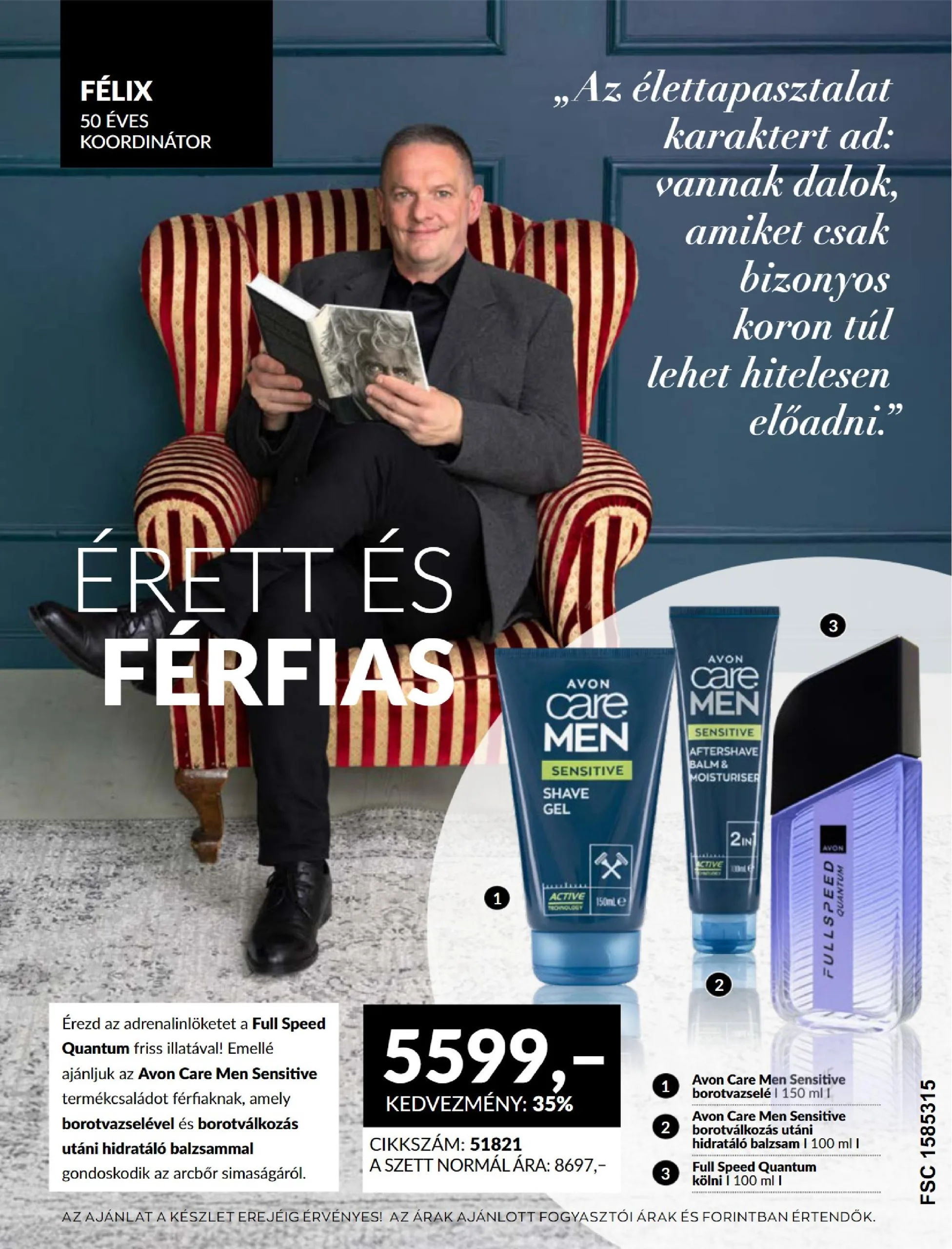 Érezd az adrenalinlöketet a Full Speed Quantum friss illatával! Emellé ajánljuk az Avon Care Men Sensitive termékcsaládot férfiaknak, amely borotvazselével és borotválkozás utáni hidratáló balzsammal gondoskodik az arcbőr simaságáról.