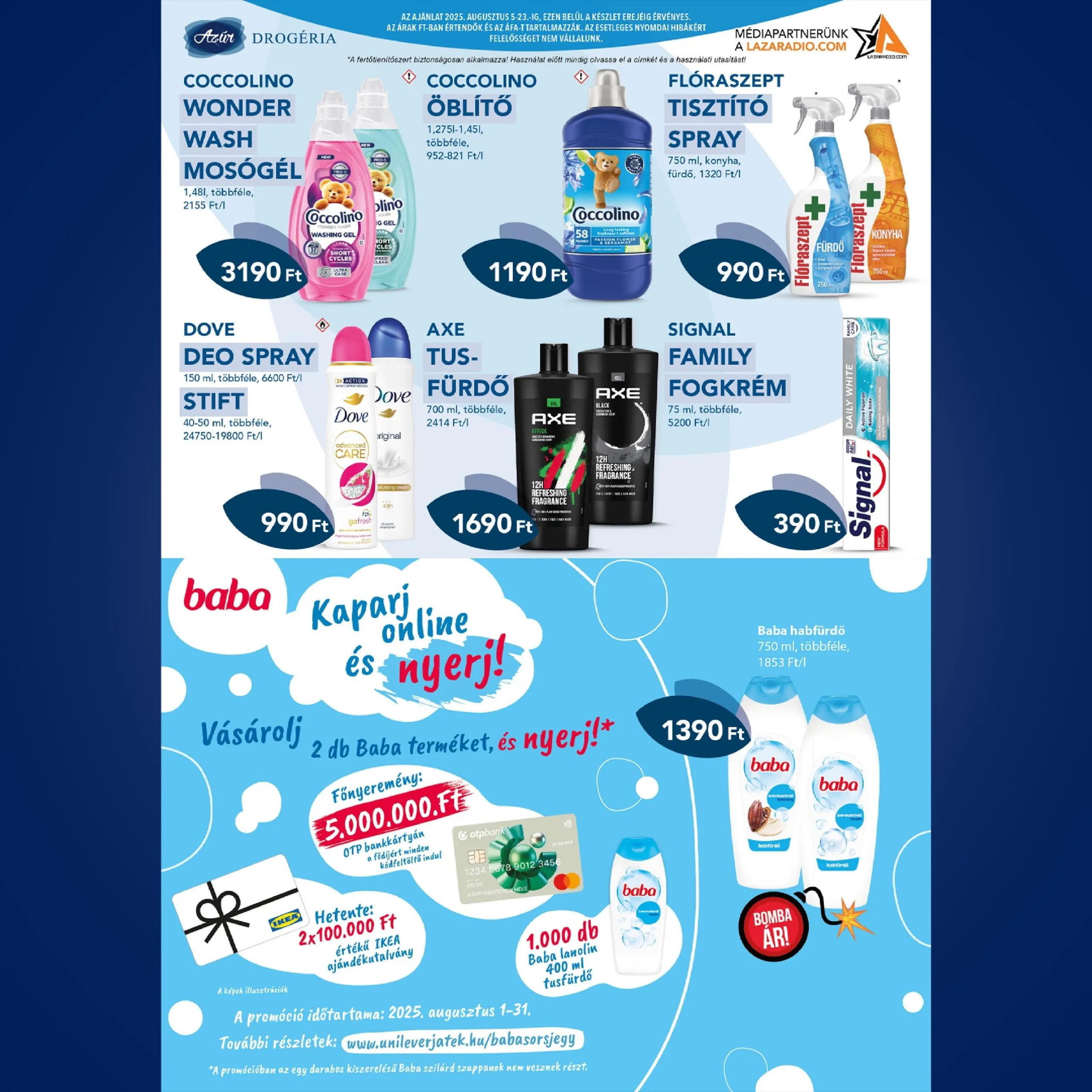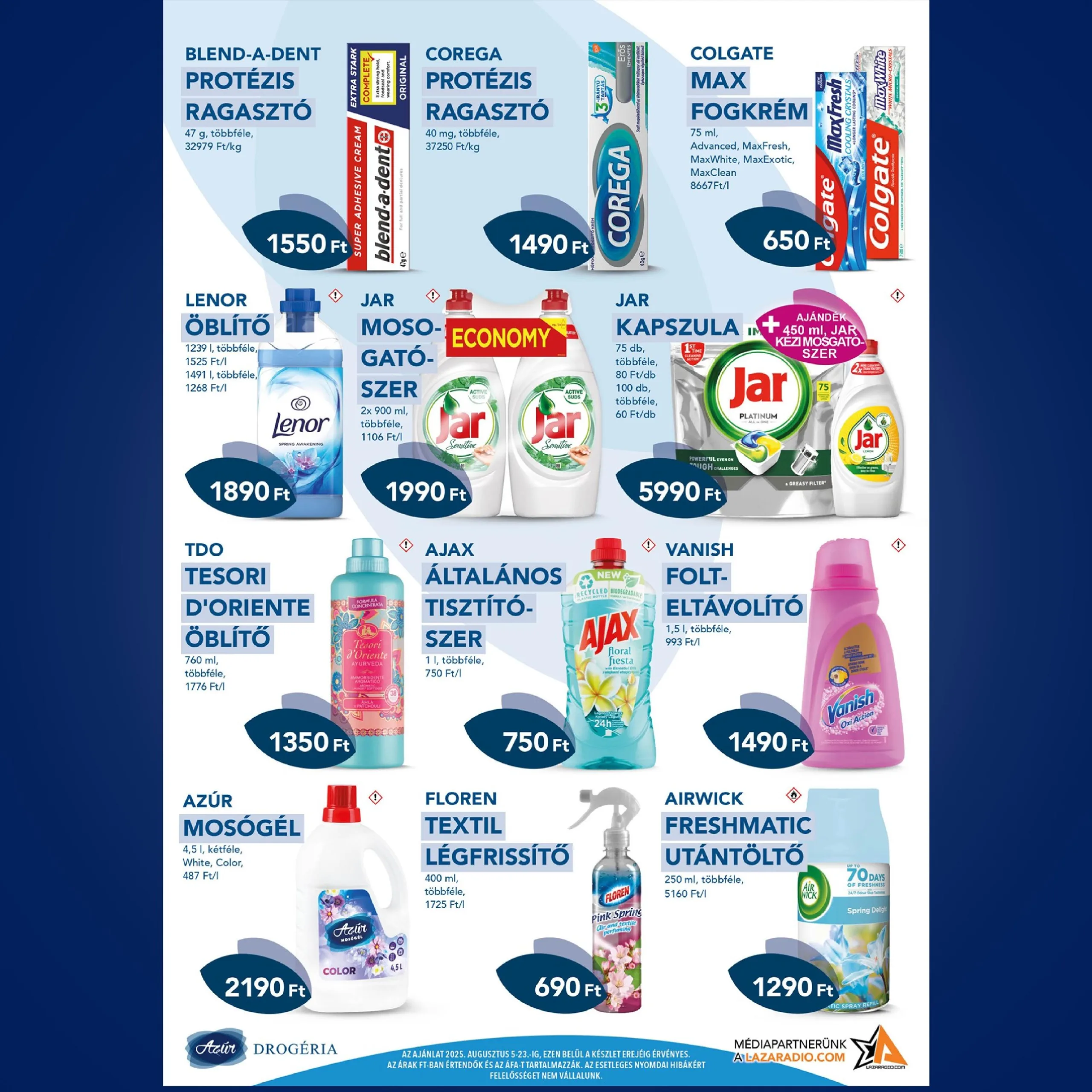 Az ajánlat 2025. augusztus 5-23-ig, ezen belül a készlet erejéig érvényes. Az árak Ft-ban értendők és az ÁFA-t tartalmazzák. Az esetleges nyomdai hibákért felelősséget nem vállalunk.