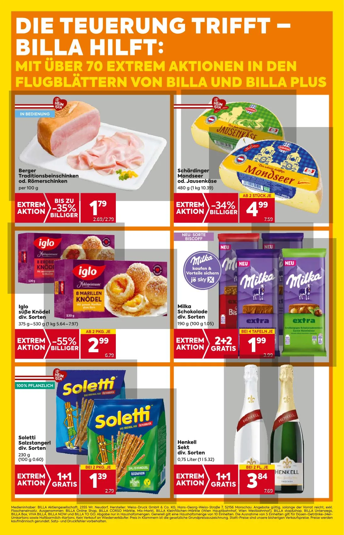 MIT ÜBER 70 EXTREM AKTIONEN IN DEN FLUGBLÄTTERN VON BILLA UND BILLA PLUS IN BEDIENUNG