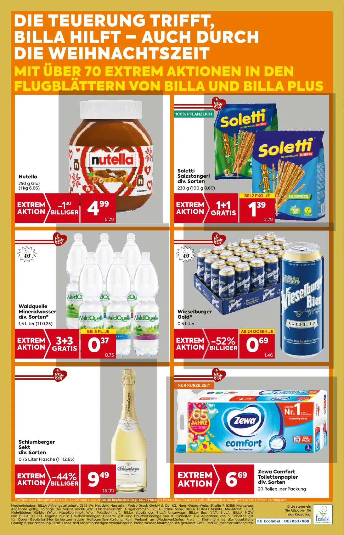 Die Teuerung trifft, BILLA hilft – auch durch die Weihnachtszeit mit über 70 extrem aktionen in den Flugblättern von BILLA und BILLA PLUS.