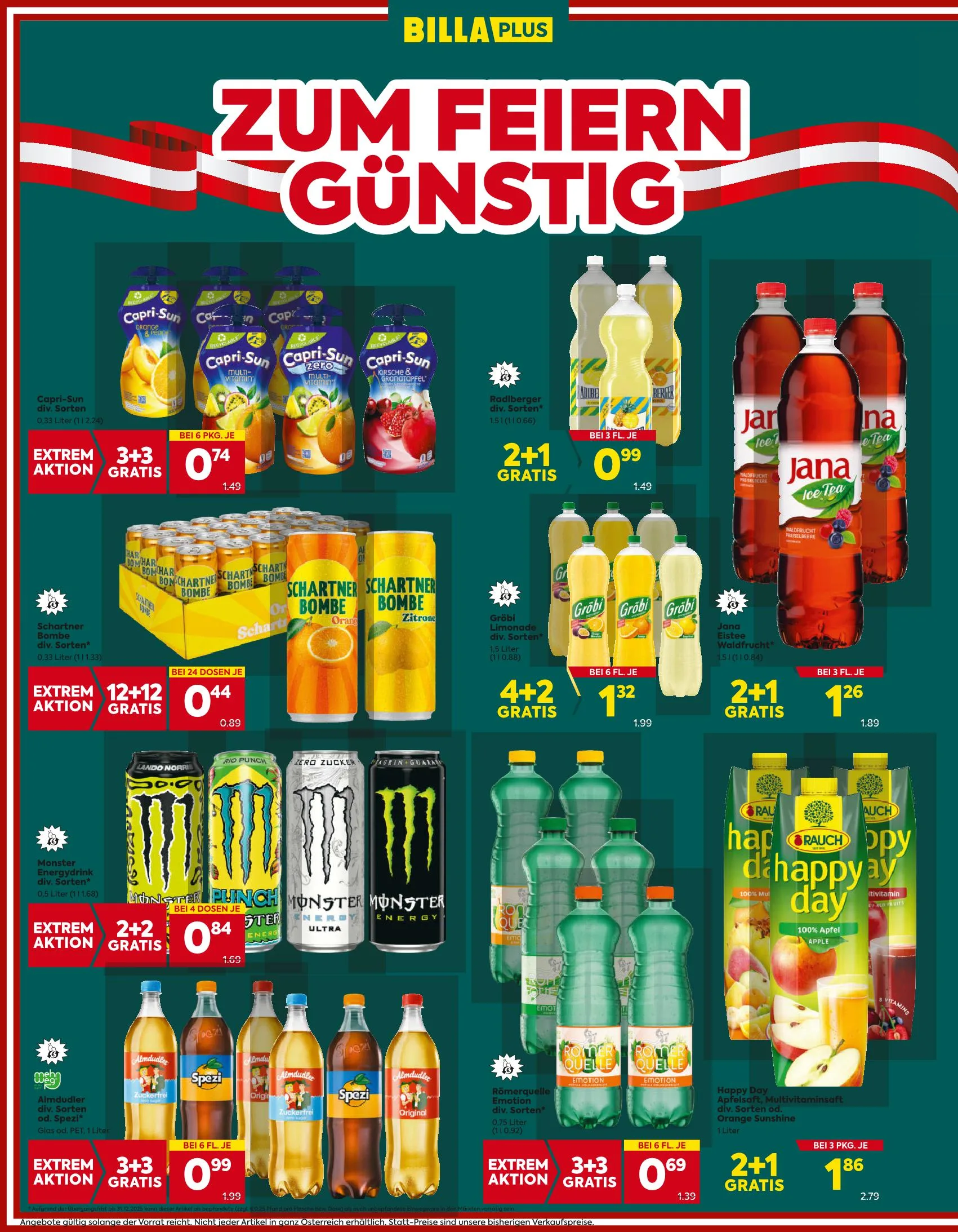 Ajánlat érvényessége: A fent említett ajánlatok 2025. december 31-ig érvényesek. A termékek bepfandolt és unbepfandate formában kaphatók a boltokban. Az ajánlatok a készlet erejéig érvényesek, és nem minden termék elérhető Ausztriában. Az áthúzott árak a korábbi eladási árakat tükrözik.