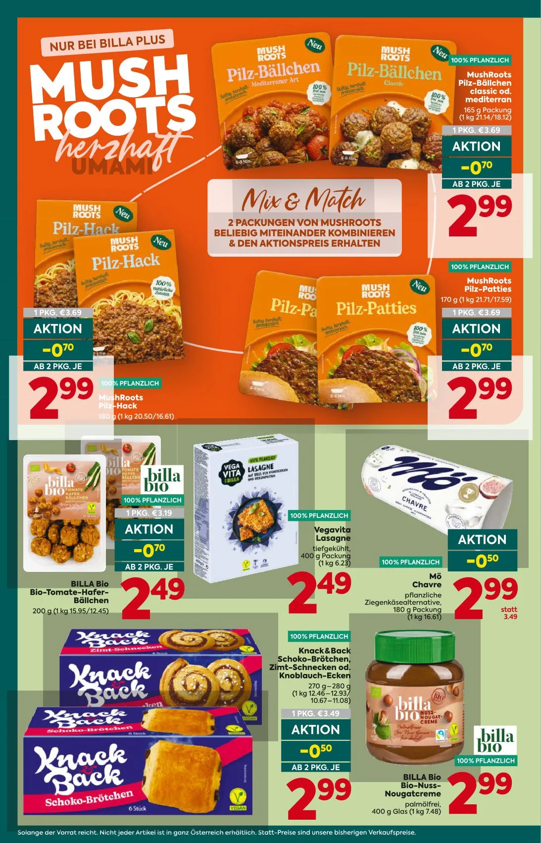- MushRoots Pilz-Bällchen classic od. mediterran – 165g Packung (1kg 21.14/18.12) – 1 PKG. €3.69, AKTION -070, AB 2 PKG. JE €2.99