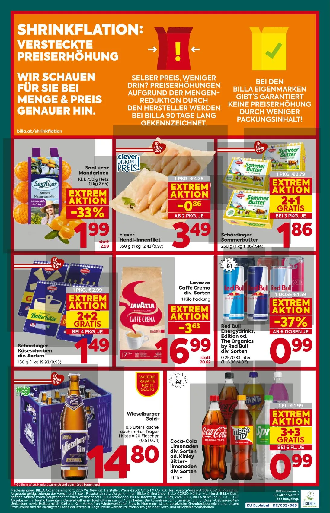 Ajánlataink érvényesek, amíg a készlet tart, kivéve a flaszenezek. Kizárt termékek: BILLA Online Shop, BILLA CORSO, mix-marketek, BILLA Kleinflachen stb.