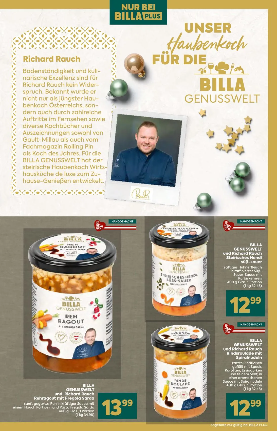 Bodenständigkeit und kulinarische Exzellenz sind für Richard Rauch kein Widerspruch. Bekannt wurde er nicht nur als jüngster Haubenkoch Österreichs, sondern auch durch zahlreiche Auftritte im Fernsehen sowie diverse Kochbücher und Auszeichnungen sowohl von Gault-Millau als auch vom Fachmagazin Rolling Pin als Koch des Jahres. Für die BILLA GENUSSWELT hat der steirische Haubenkoch Wirts-hausküche de luxe zum Zuhause-Genießen entwickelt.