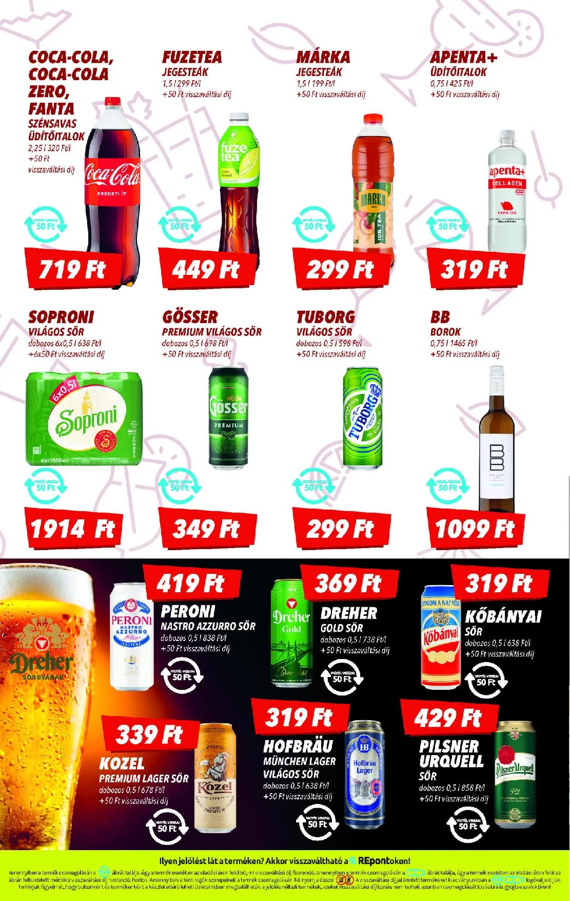 - Coca-Cola Zero: 199 Ft (1,5 l) + 50 Ft visszaváltási díj