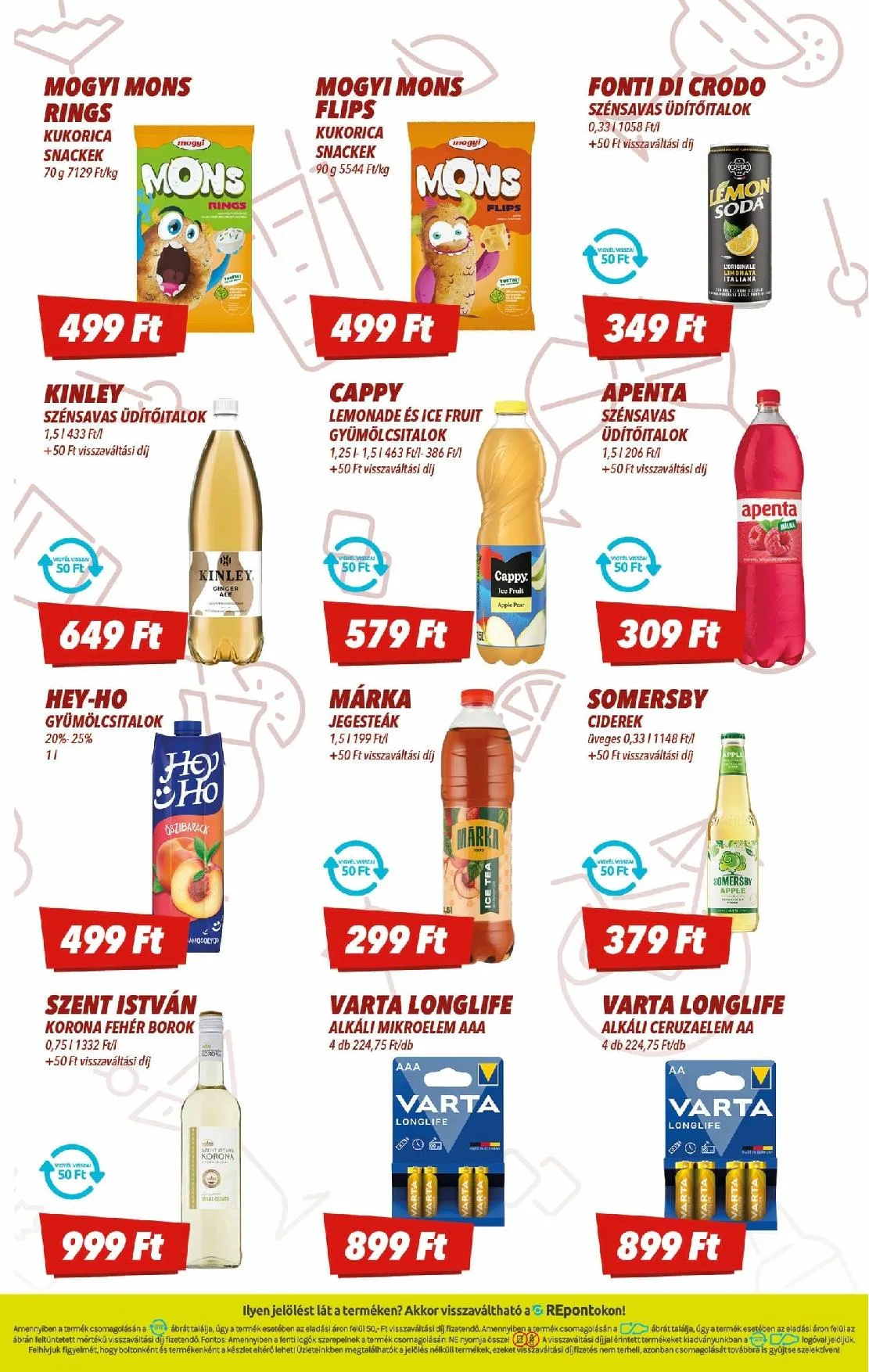 Visszaváltási díj minden terméknél: 50 Ft