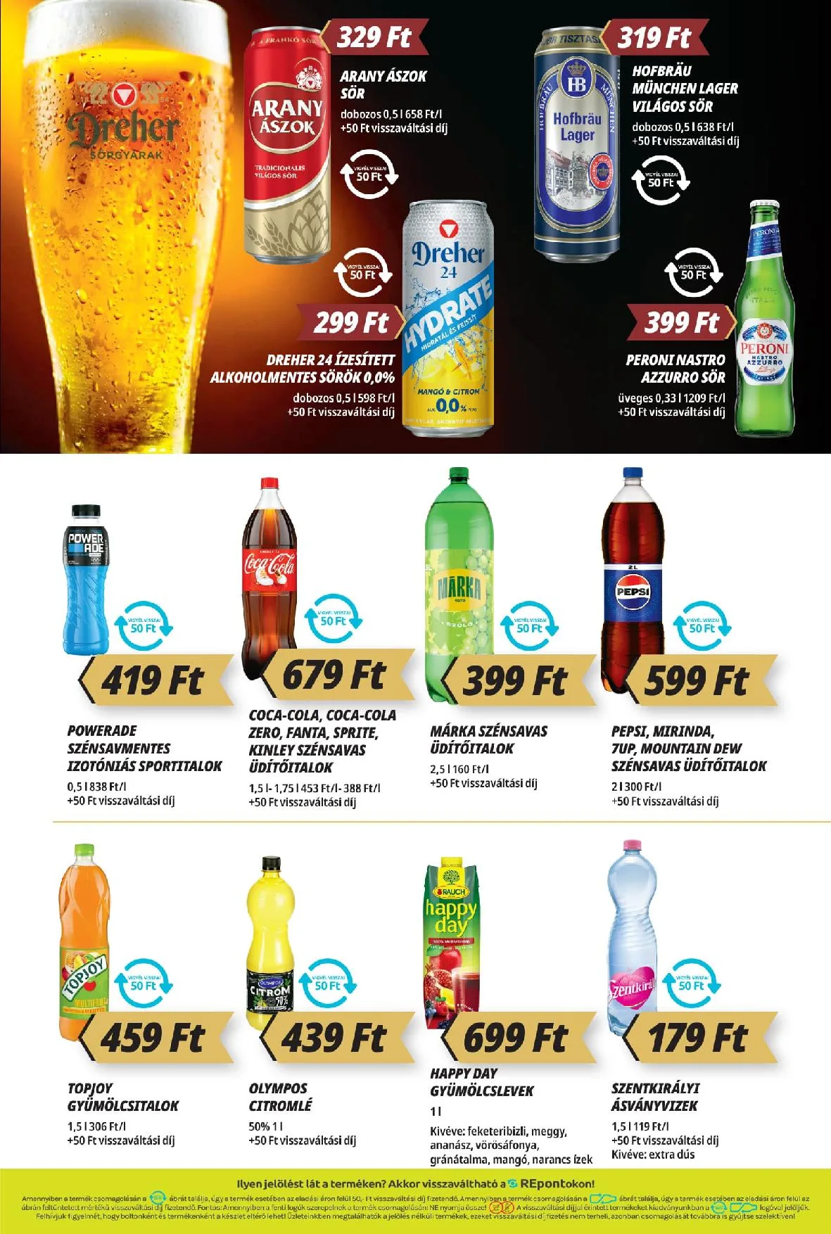 - Coca-Cola: (419 Ft +50 Ft visszaváltási díj)