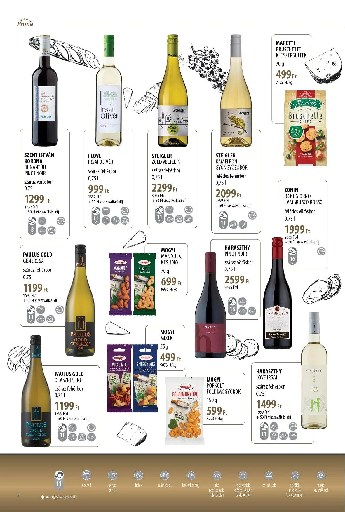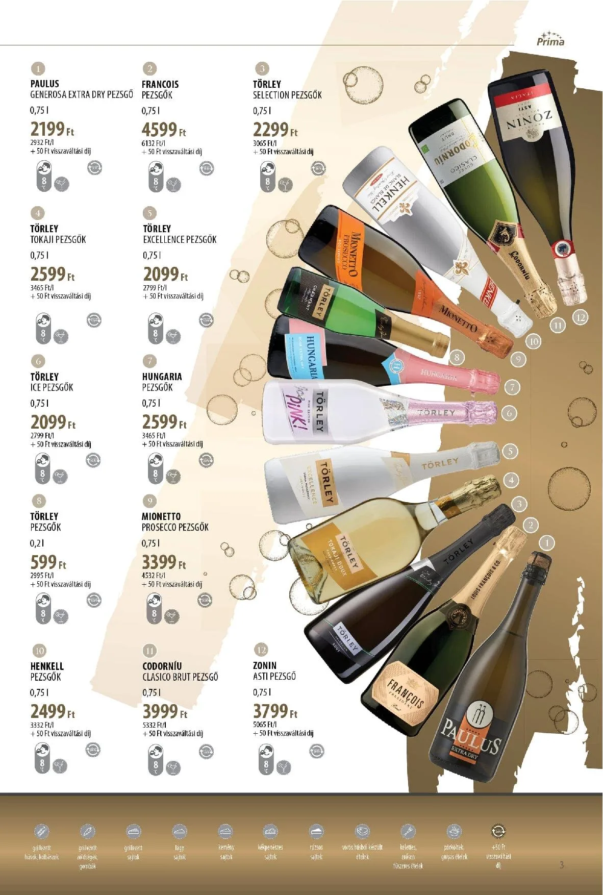 - Pezsgők – 0,751 l – 2.599 Ft – 3.465 Ft/l (+50 Ft visszaváltási díj)