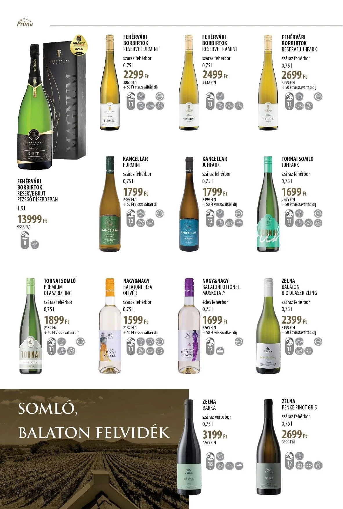 - Tornai Somló Premium Olaszrizling – Száraz fehérbor – 0,75 l – 1 899 Ft (2 532 Ft/l) + 50 Ft visszaváltási díj