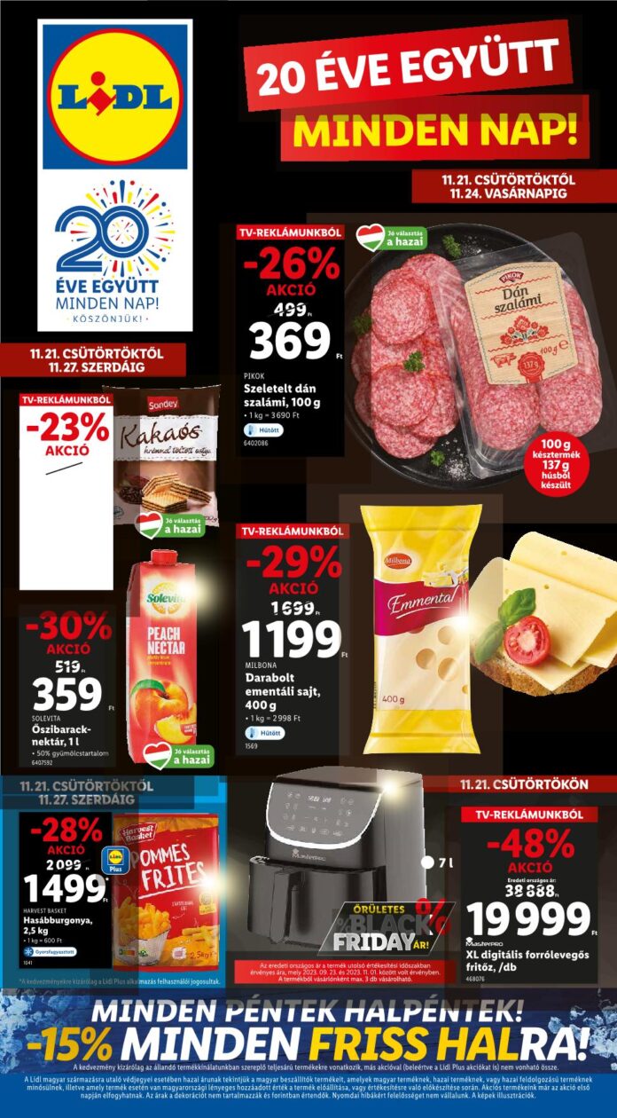 LiDL 20 ÉVE EGYÜTT MINDEN NAP! KÖSZÖNJÜK!. 11.21. CSÜTÖRTÖKTŐL 11.27. SZERDÁIG TV-REKLÁMUNKBÓL -23% AKCIÓ Sondey Kakaós krémmel töltött ostya 20 ÉVE EGYÜTT MINDEN NAP! TV-REKLÁMUNKBÓL -26% AKCIÓ 499PL 369...
