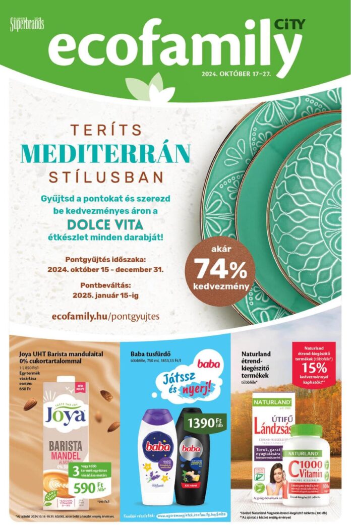 Superbrands ecofamily 2024. OKTÓBER 17-27. 0000 TERÍTS MEDITERRÁN STÍLUSBAN Gyűjtsd a pontokat és szerezd be kedvezményes áron a DOLCE VITA étkészlet minden darabját! Pontgyűjtés időszaka: 2024. október 15 -...