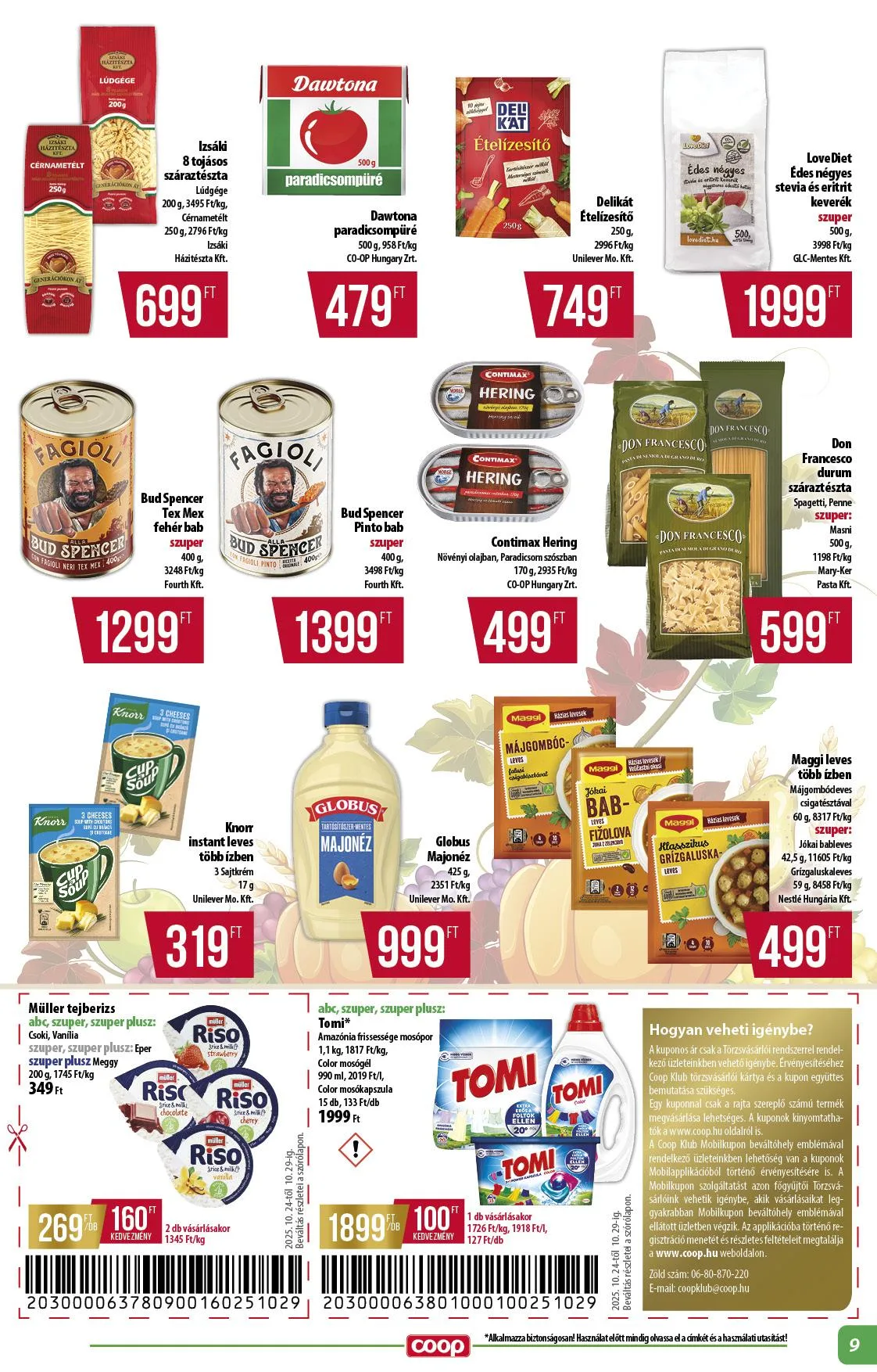 Coop Klub ár: Törzsvásárlói kártyával érvényes.