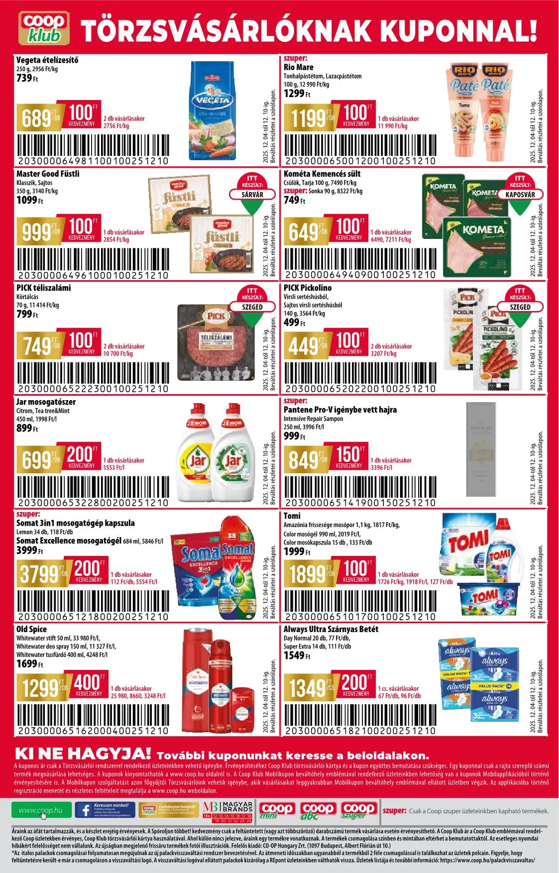 A kuponos ár csak a Törzsvásárlói rendszerrel rendelkező üzleteinkben vehető igénybe. Érvényesítéséhez Coop Klub törzsvásárlói kártya és a kupon együttes bemutatása szükséges. Egy kuponnal csak a rajta szereplő számú termék megvásárlása lehetséges. A kuponok kinyomtathatók a www.coop.hu oldalról is. A Mobilkupon szolgáltatást azon főgyűjtői Törzsvásárlóink vehetik igénybe, akik vásárlásaikat leggyakrabban Mobilkupon beváltóhely emblémával ellátott üzletben végzik.