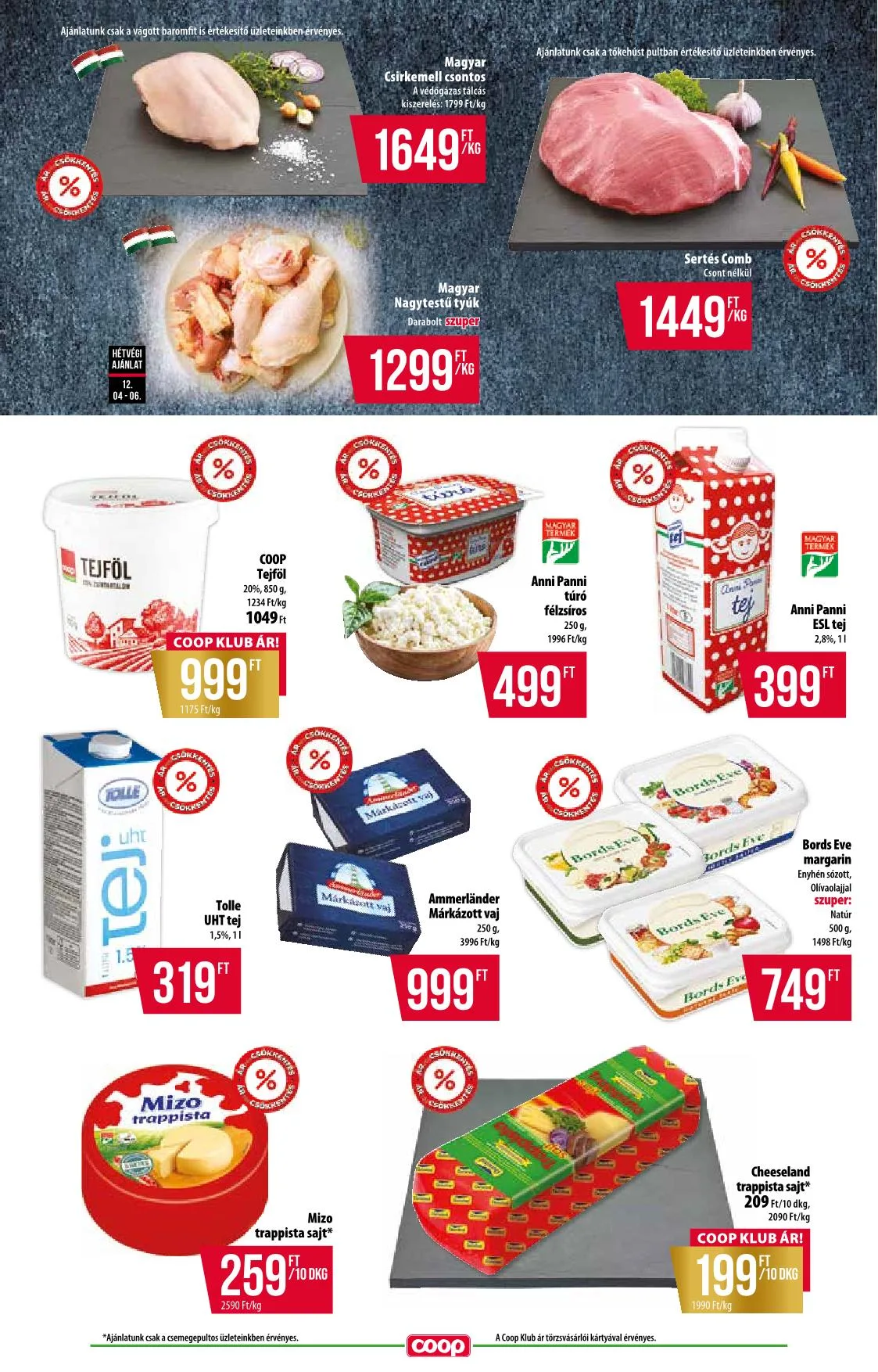 209 Ft/10 dkg (2090 Ft/kg), COOP KLUB ÁR: 199 Ft (1990 Ft/kg)