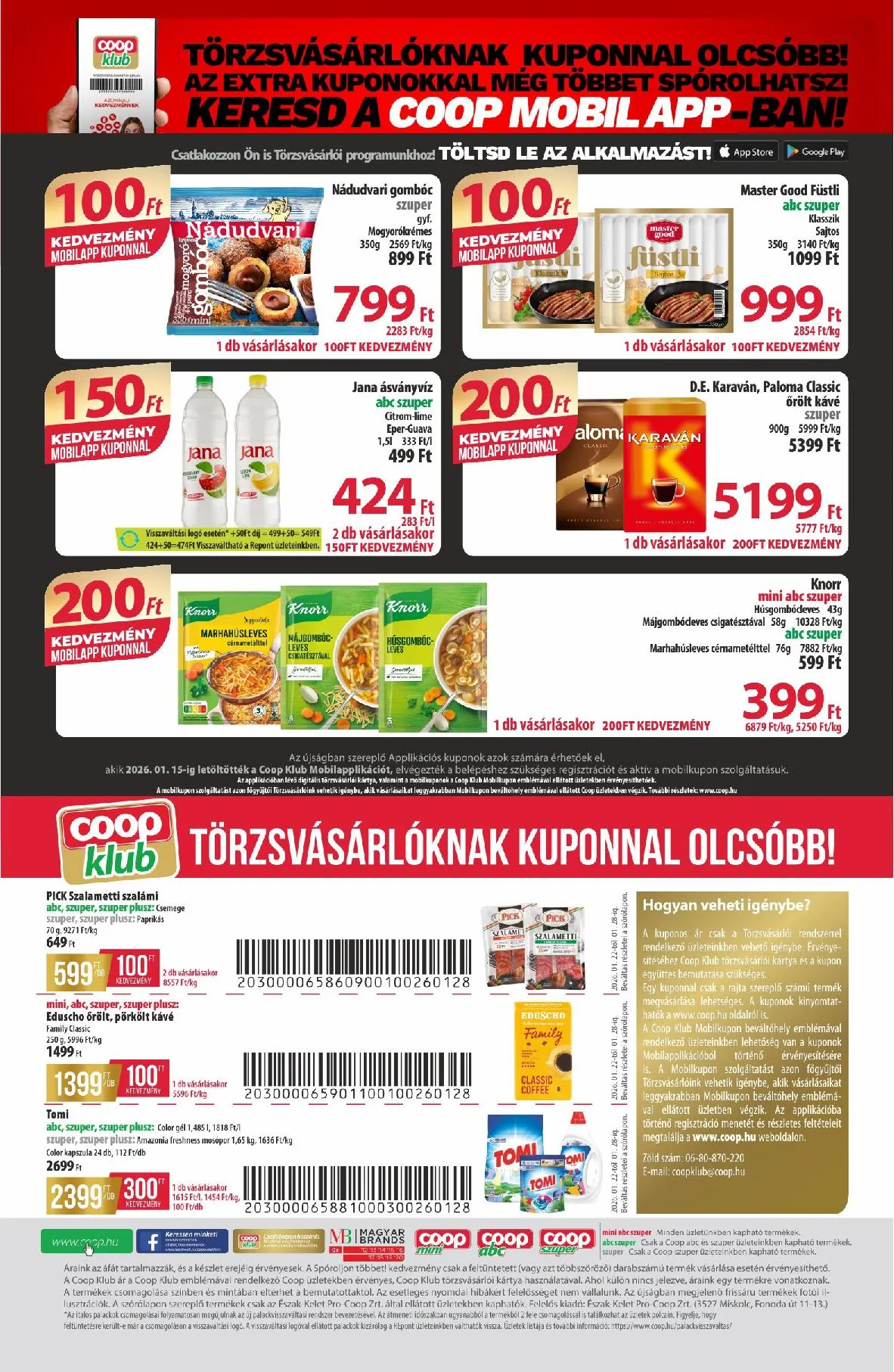 Az újságban szereplő applikációs kuponok azok számára érhetőek el, akik 2026. 01. 15-ig letöltötték a Coop Klub Mobilapplikációt, elvégezték a belépéshez szükséges regisztrációt, és aktív a mobilkupon szolgáltatásuk.