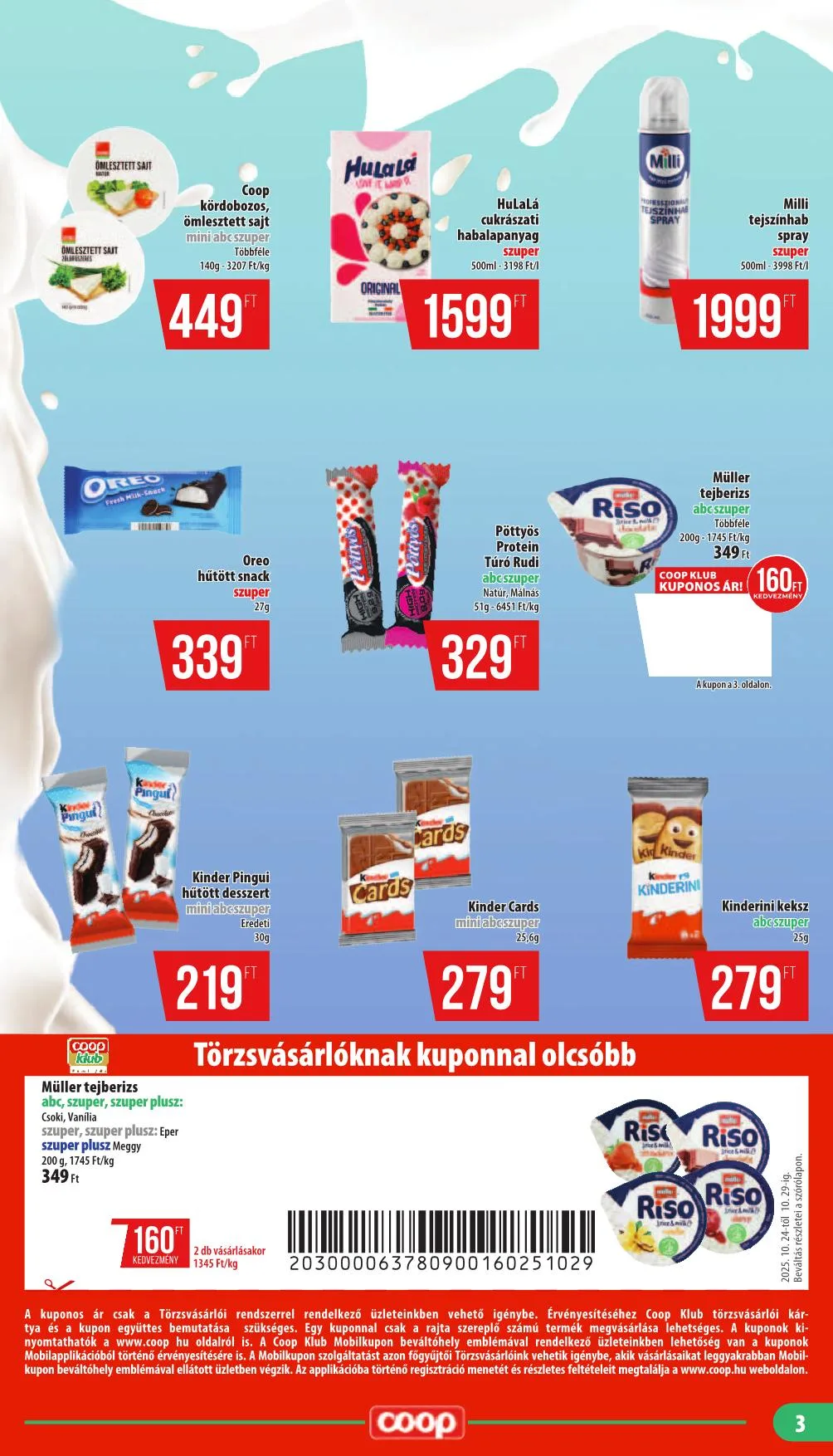 A kuponos ár csak a Törzsvásárlói rendszerrel rendelkező üzleteinkben vehető igénybe. Érvényesítéséhez Coop Klub törzsvásárlói kártya és a kupon együttes bemutatása szükséges. Egy kuponnal csak a rajta szereplő számú termék megvásárlása lehetséges.