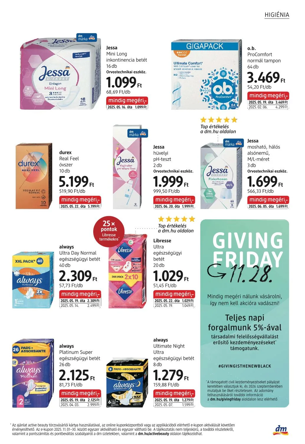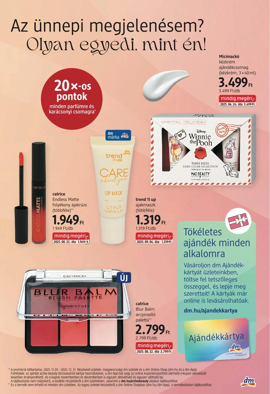 * Az ajánlat active beauty törzsvásárlói kártya használatával, az online kuponközpontból vagy az applikációból elérhető e-kupon aktiválását követően érvényesíthető. Az e-kupon 2025.11.01-30. között egyszer aktiválható és egyszer váltható be. A tájékoztatás nem teljeskörű, a további részletekről, valamint a pontszámítás és pontbeváltás szabályairól a dm üzletekben, valamint a dm.hu/activebeauty oldalon tájékozódhat.
