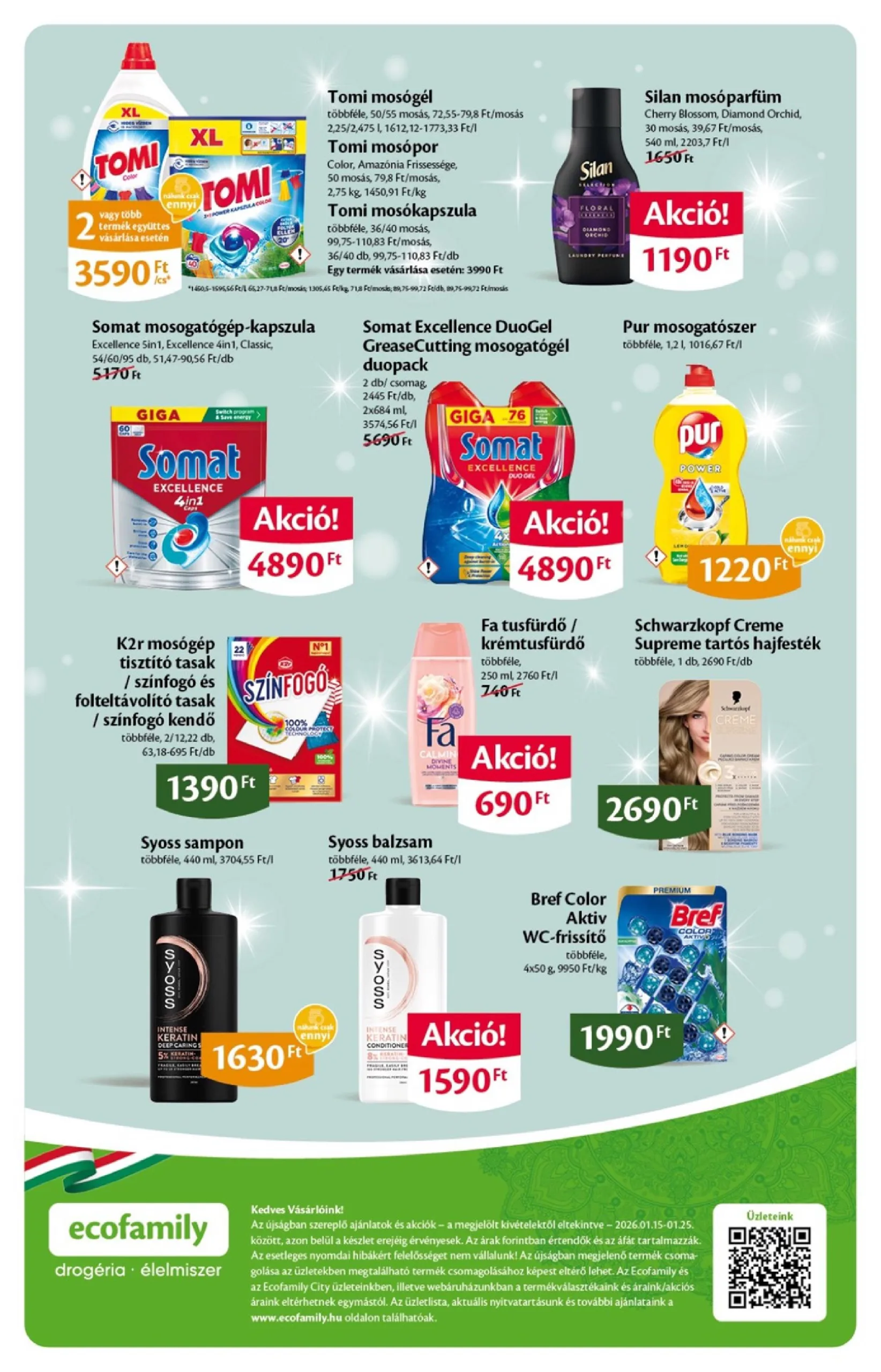 A hirdetésben szereplő ajánlatok és akciók Ecofamily, Ecofamily city üzleteinkben és webáruházunkban 2026.01.13-01.19. között, ezen belül a készlet erejéig érvényesek. Az árak forintban értendők és az áfát tartalmazzák. A termékek választéka üzletenként eltérhet.