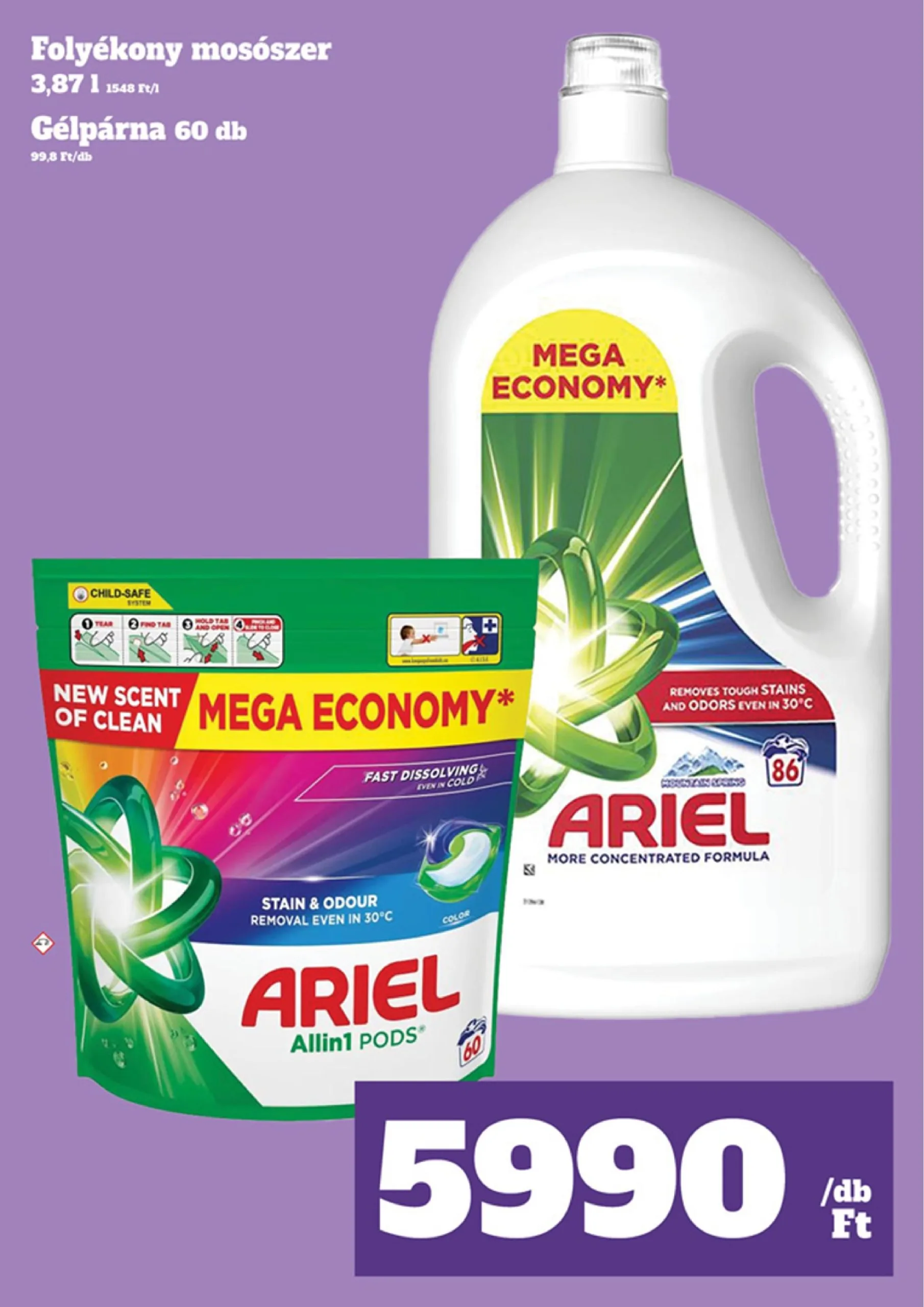 Eltávolítja a makacs foltokat és szagokat, akár 30°C-on is